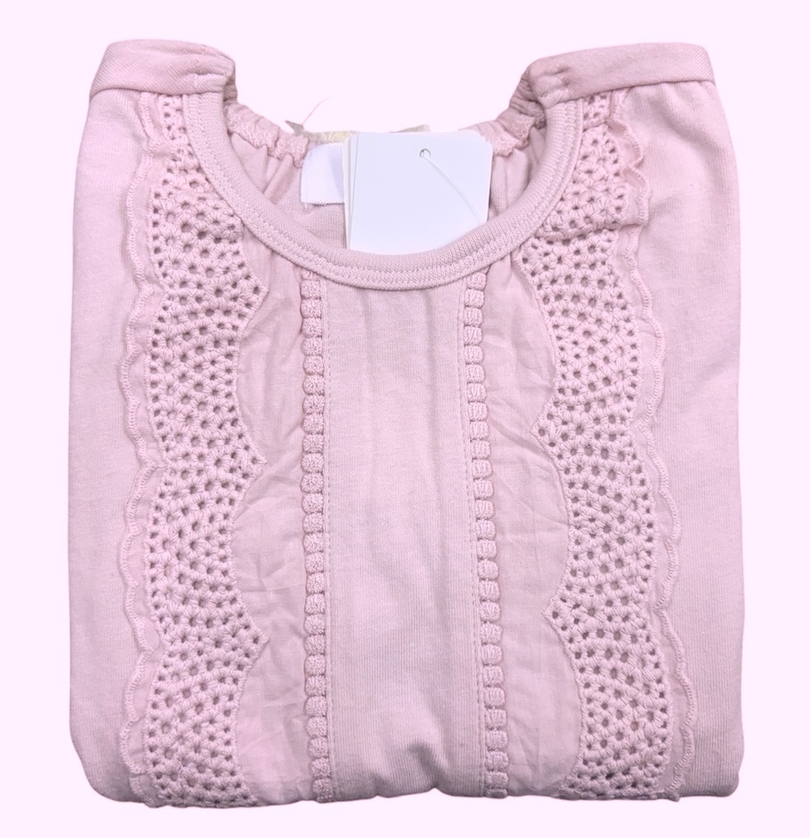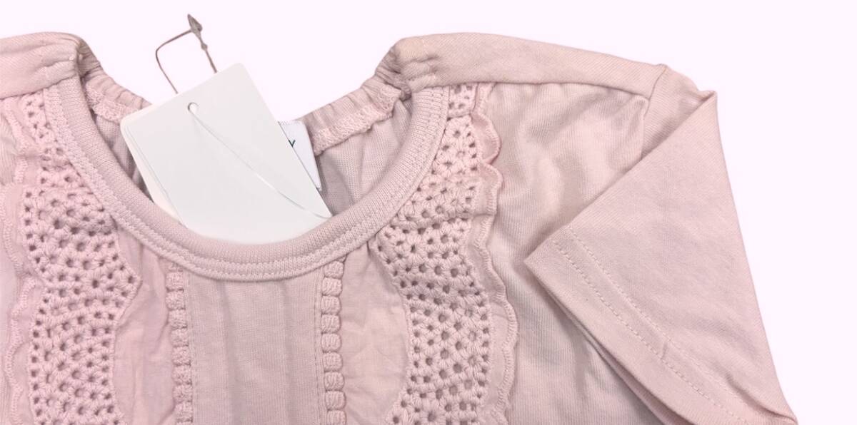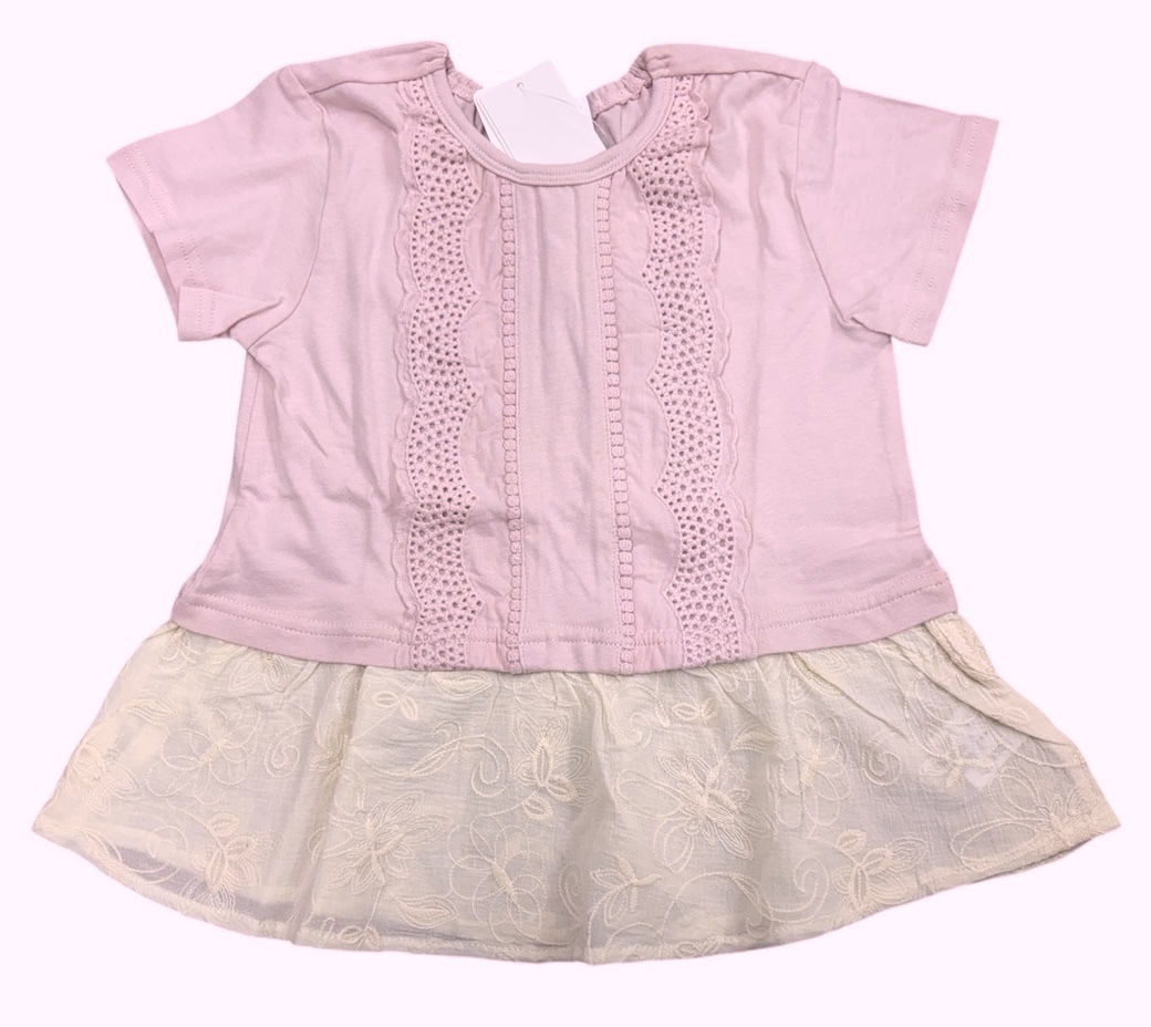 即決 新品タグ付 WILL MERY ウイルメリー★裾切り替え 綿レース使い 半袖Tシャツ★子供 120cm 7-8才 ¥2090