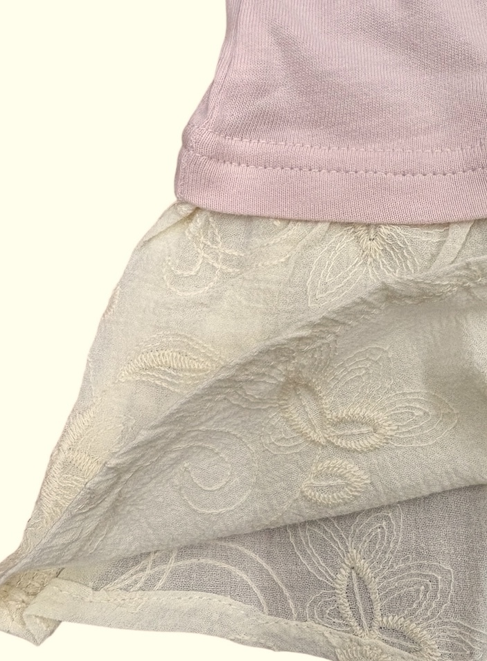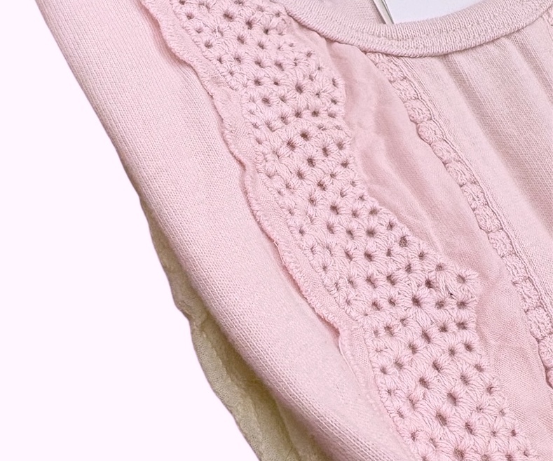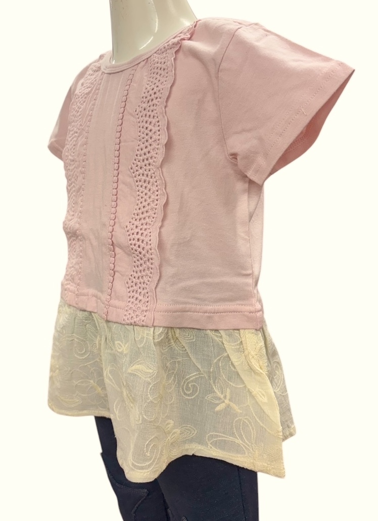 とっても可愛い綿レース使いの裾切り替えTシャツ。