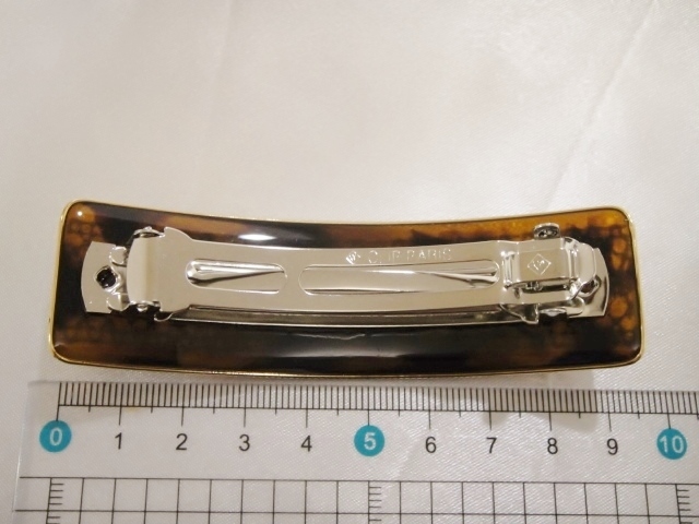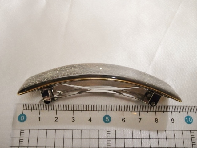 バレッタ本体、クリップ等にメッキ加工が施されておりますが経年劣化による色の変色が生じる場合がございます。