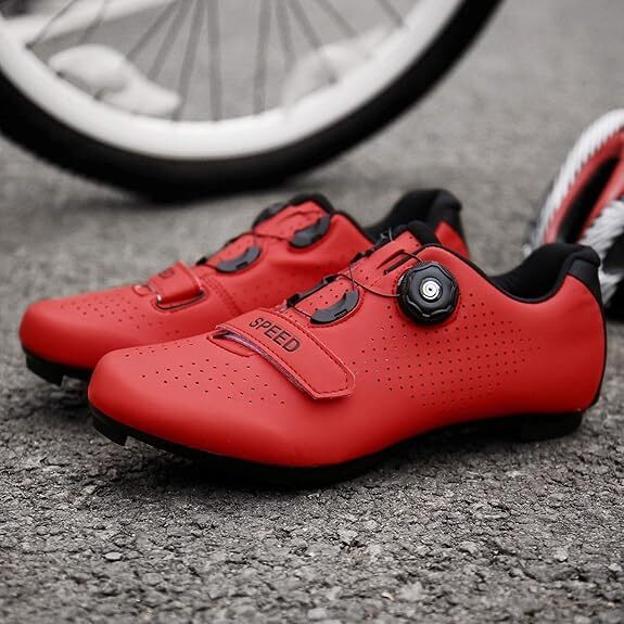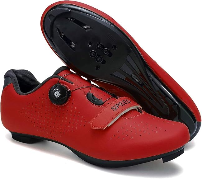 サイクリングシューズ サイクルシューズ ビンディングシューズ 自転車靴 SPD/SPD-SL両対応 快速靴紐 レッド サイズ:26cm