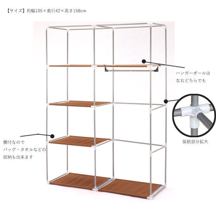 | 商品説明 | ●ハンガーポールは左右どちらにも対応。 【仕様】 ■サイズ:約幅105×奥行42×高さ158cm ■材質:スチール/紛体塗装、ジョイント/ポリプロピレン、カバー/不織布 ■重量:約2.7kg ■生産国:中国製 ■備考:お客様組み立て品 |