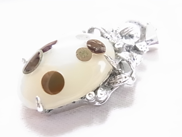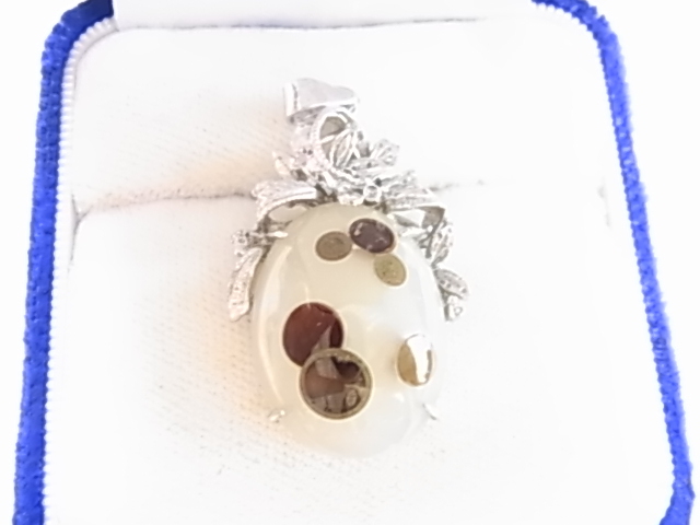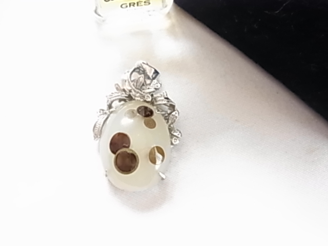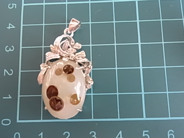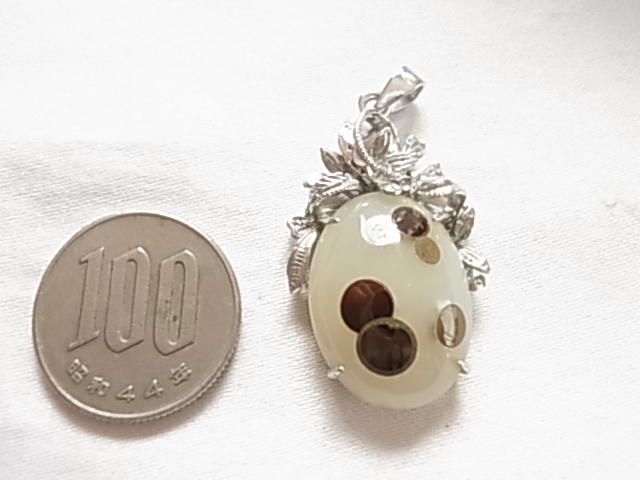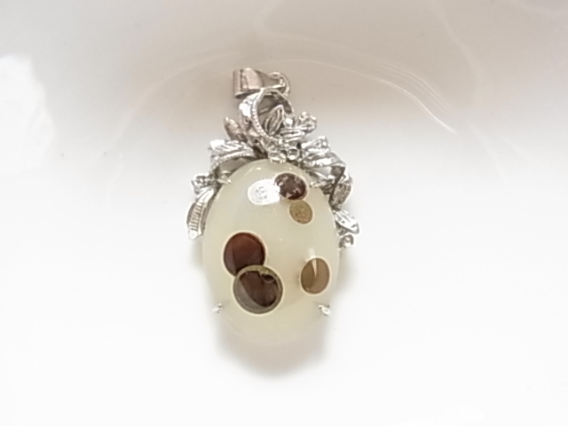 ビンテージ/ヴィンテージ ころんとした形が可愛らしい印象 白濁トーンにブラウン系の模様のアゲート調 素材不明 ペンダントトップ◎◎