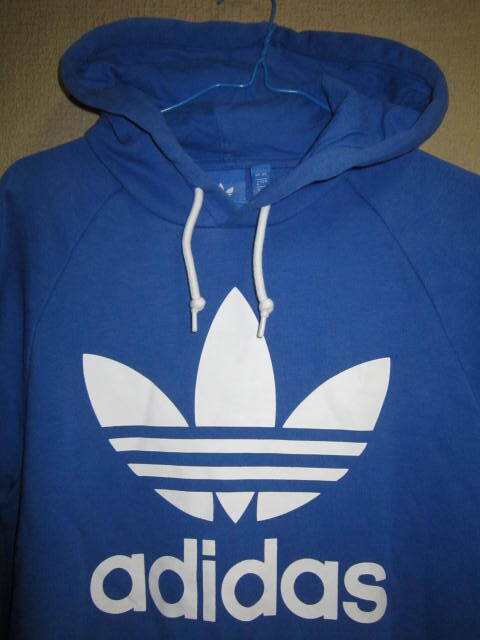 激安 即決! adidas アディダス トレフォイル デカロゴ スウェット パーカー 青/白 M 三つ葉