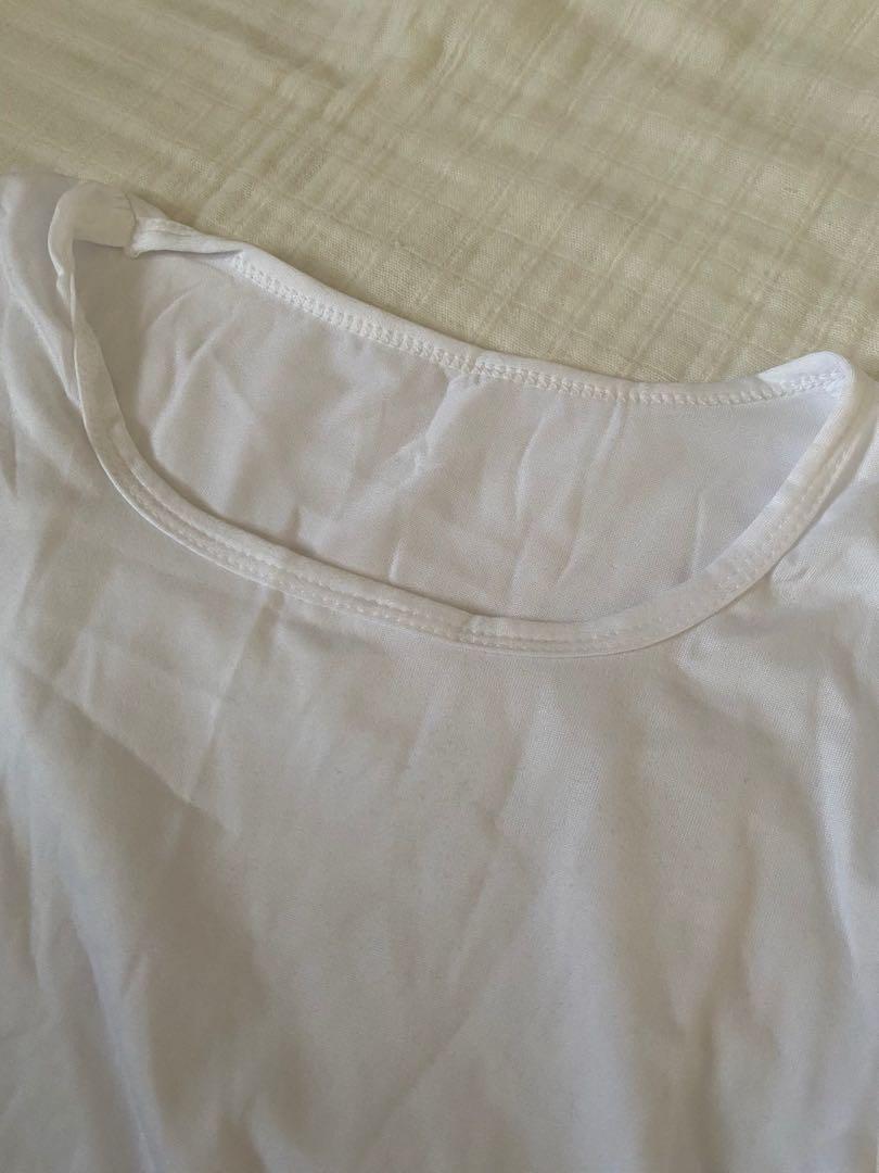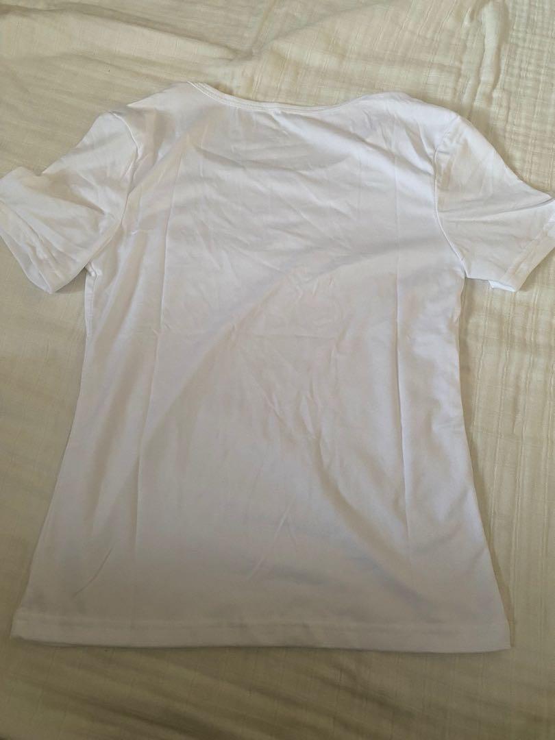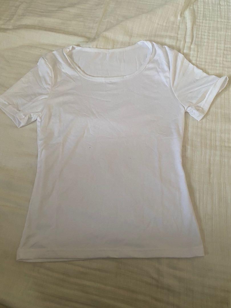 ポリエステル100%のシンプルな白Tシャツ、サイズF、快適な着心地。