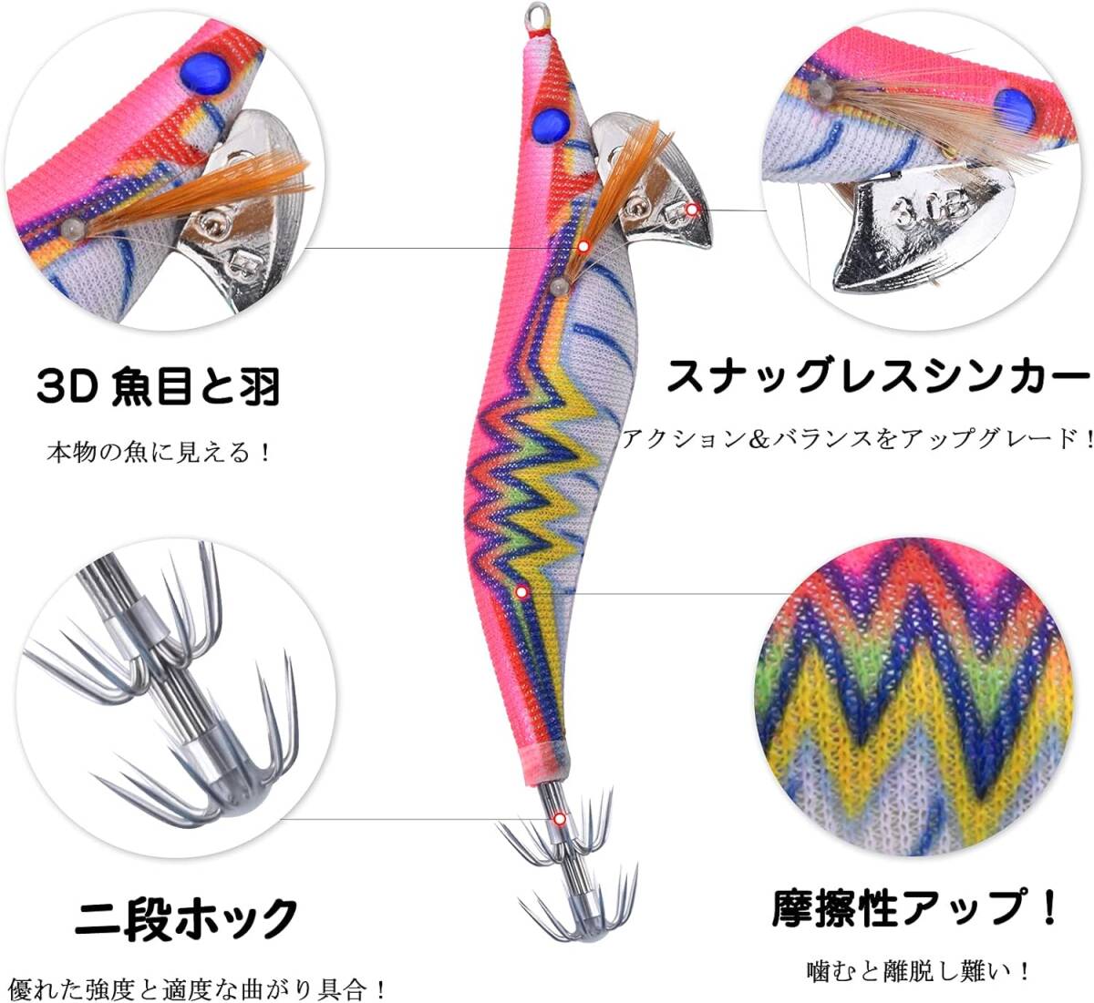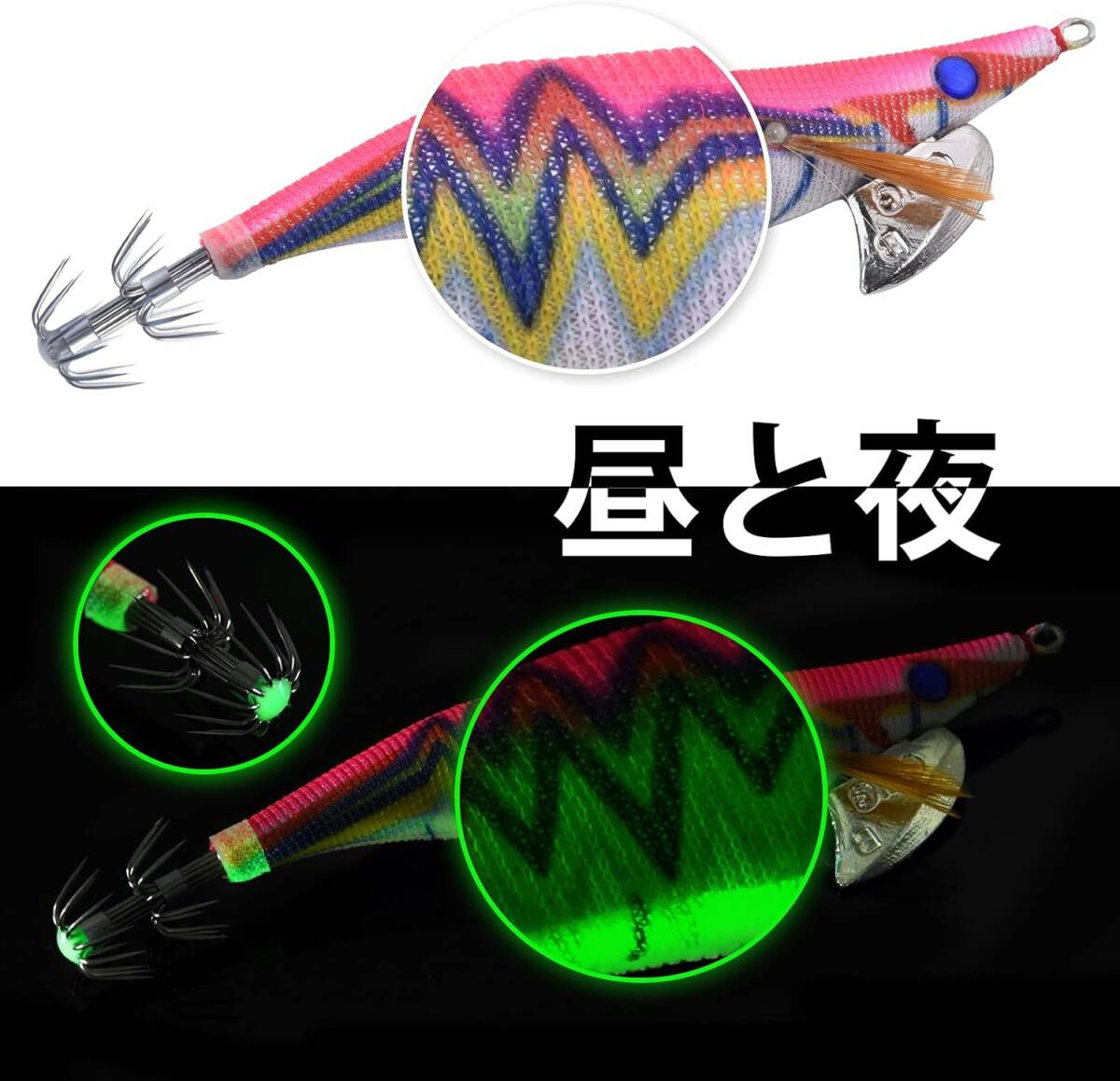 エギ エギング セット 3.5号 5本 15g 14 x 14 x 2 cm イカ釣り アオリイカルアー セット 夜光 疑似餌