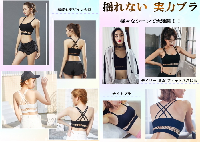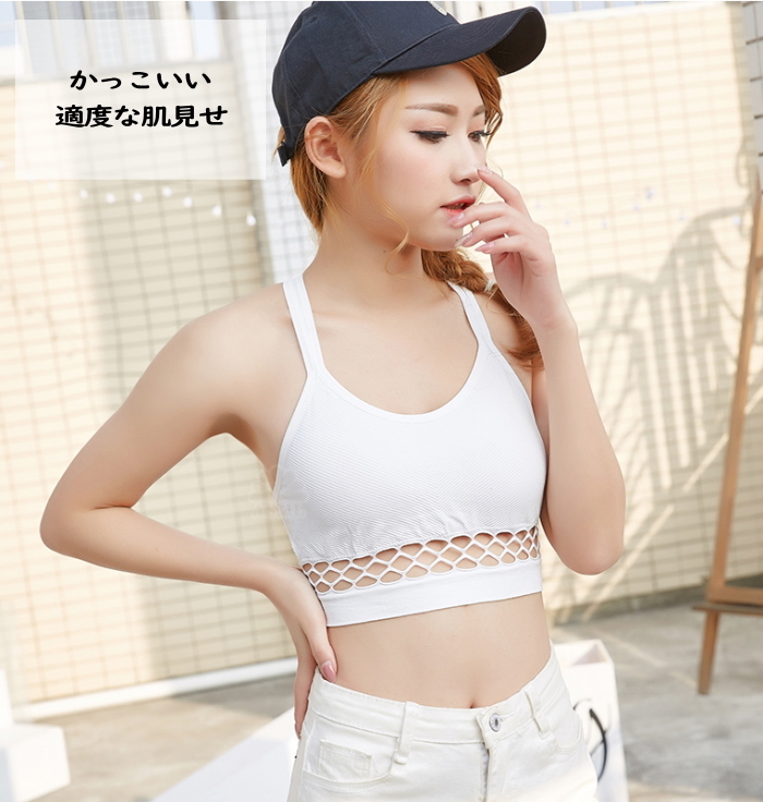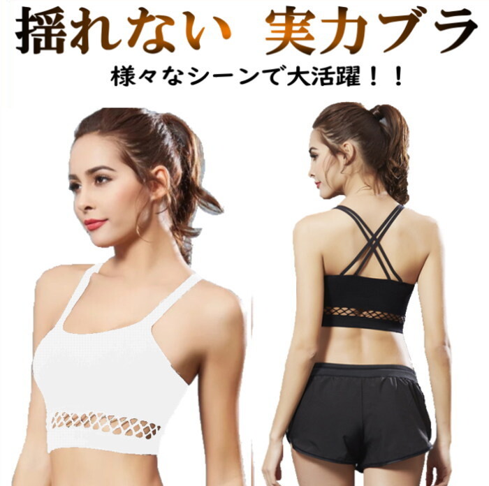 スポーツブラ【白】揺れない スポブラインナー クロスバック フィットネス ヨガ ダンス メッシュ 見せブラ カップ付き cy28n-p0