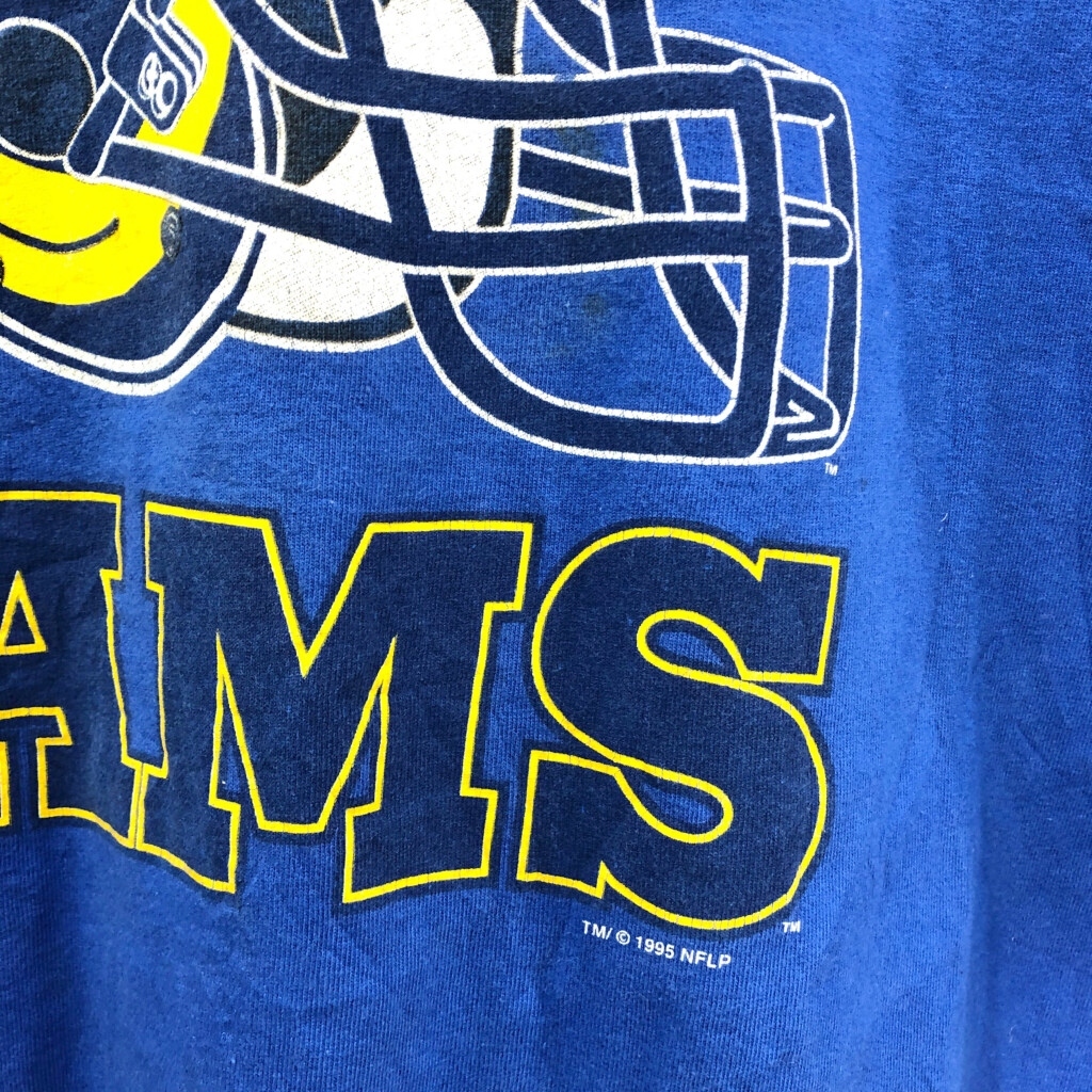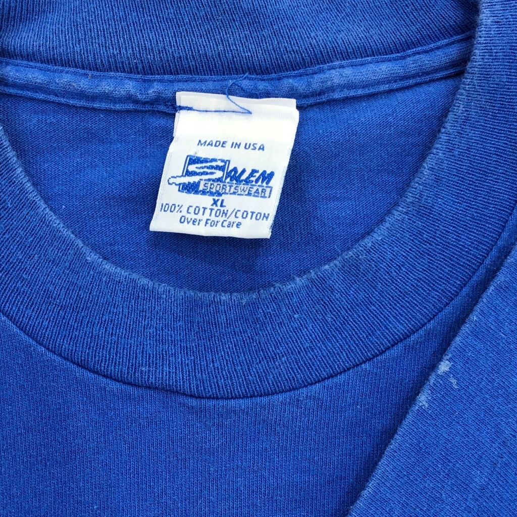 [商品管理番号] T6753 [ブランド] SALEM SPORTSWEAR/セーレム スポーツウェア [サイズ] XL [実寸サイズ] 肩幅:約58cm 着丈:約77cm 身幅:約63cm 袖丈:約20cm [主な素材] 表地 : コットン [色] ブルー [仕様] 生産国 : USA製 90年代 シングルステッチ プロチーム、アメフト [状態] 汚れ:首元、胸、腹部、背中 特記事項:変色、色褪せ、プリント劣化、毛羽立ち | |||