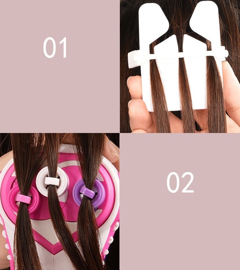 1.アクセサリを使用して、3本の髪を均等に分割します