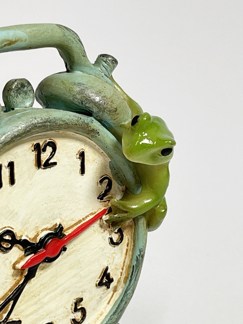 | ■新品■ 目覚まし時計の上に乗ったカエルがかわいいミニサイズのオブジェです。 リアルな作りで小さいですが存在感のある置物です。 他の種類と並べて飾って頂いても可愛いです。 ※1点1点手作りですので大きさ、形などに多少の誤差があります。 小傷などもありますのでご理解の上、ご検討ください。 | |||