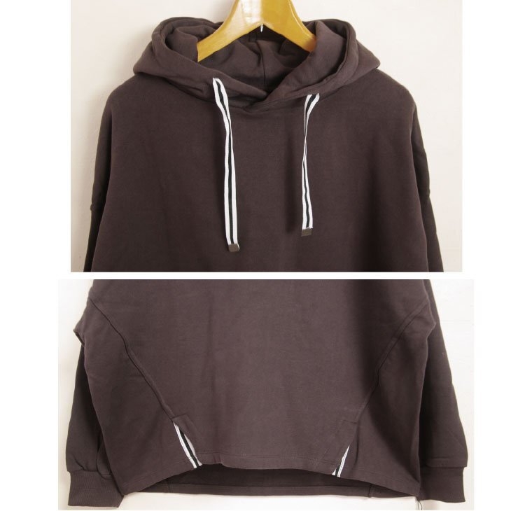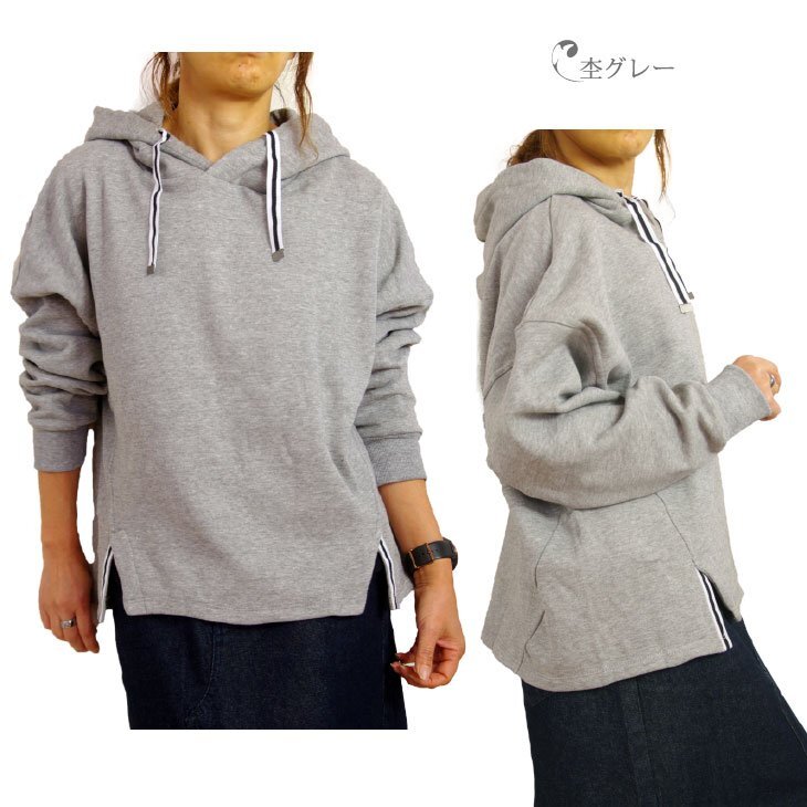 M~L パーカー 裏起毛 レディース スウェット ライン入り 長袖 秋冬 杢グレー 新品