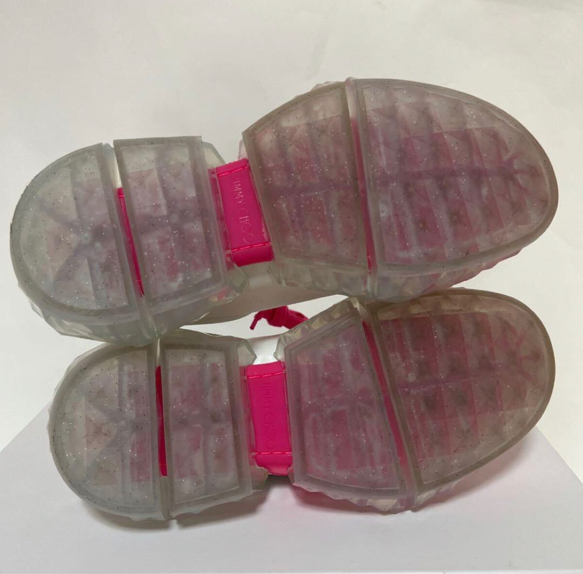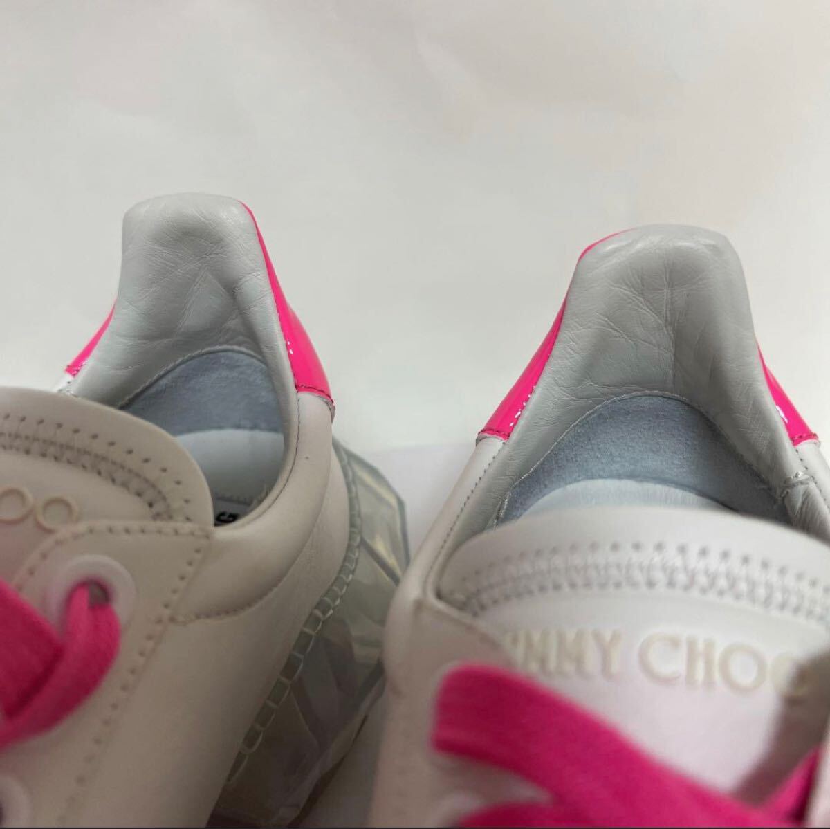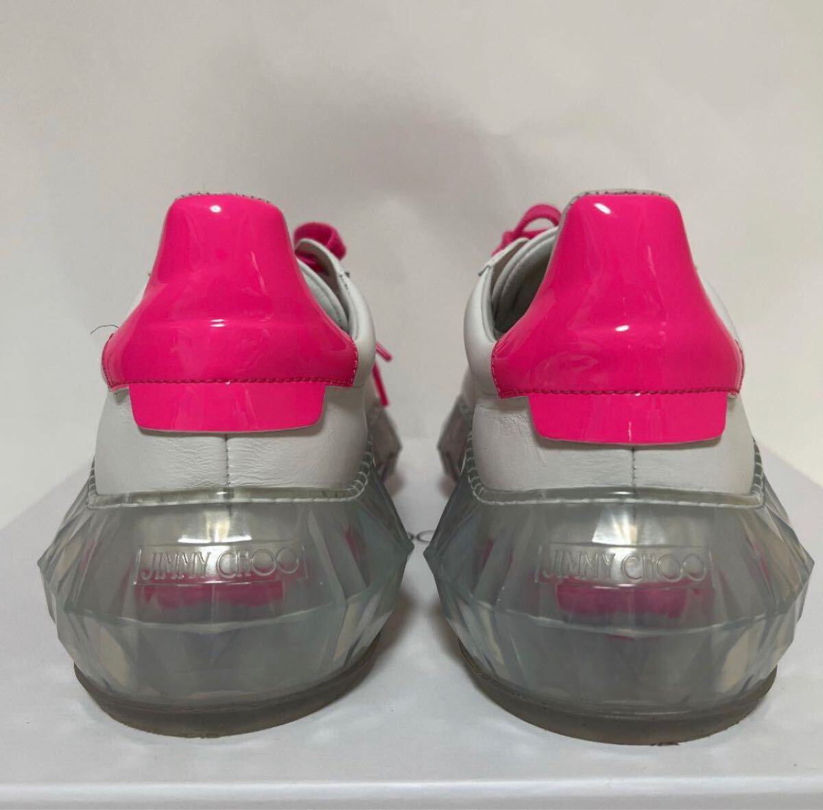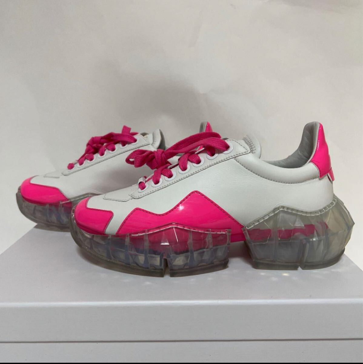 JIMMY CHOO YG JEONG コラボ ジミーチュウ ヨンキージョン レザー ローカット ダット スニーカー ダイヤモンド ネオンピンク 36 中古