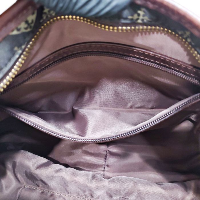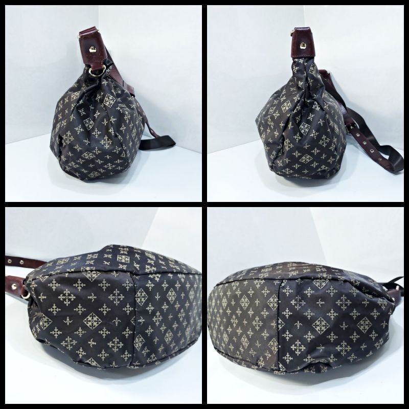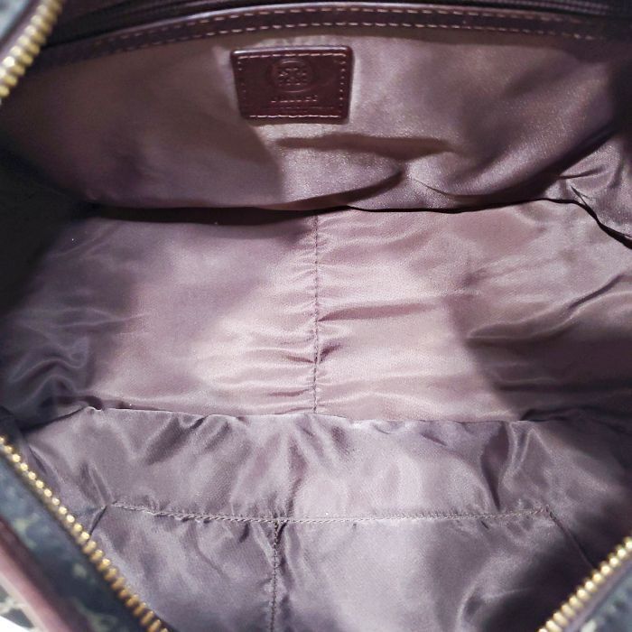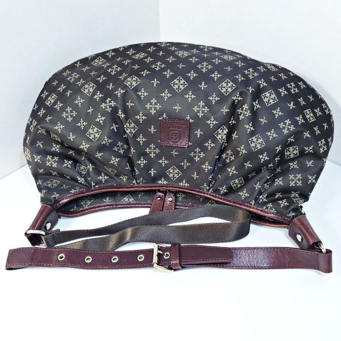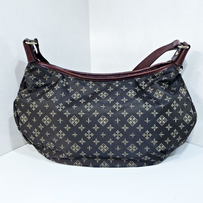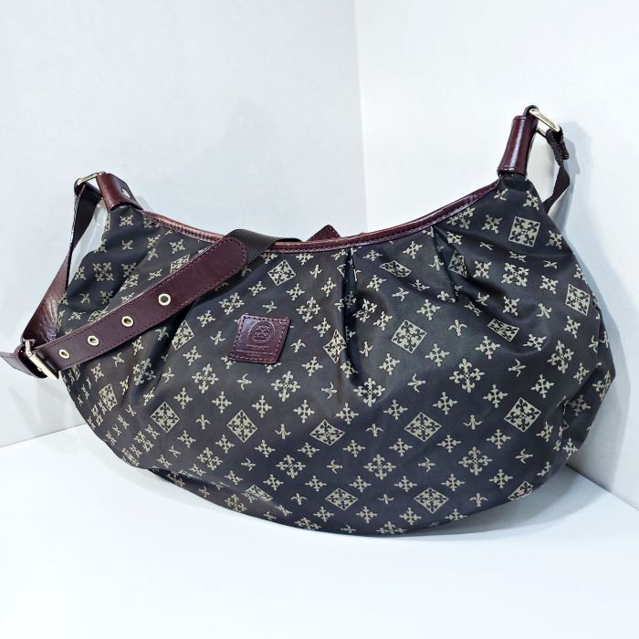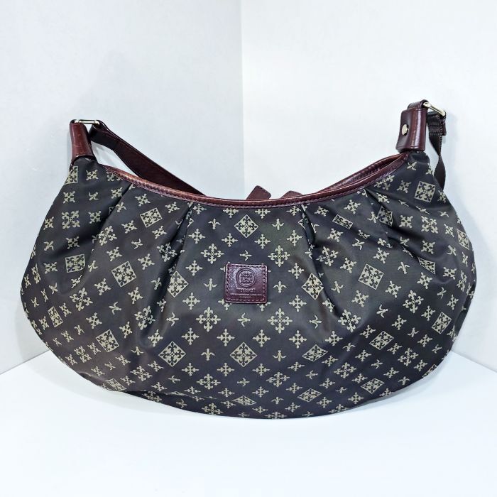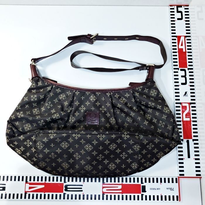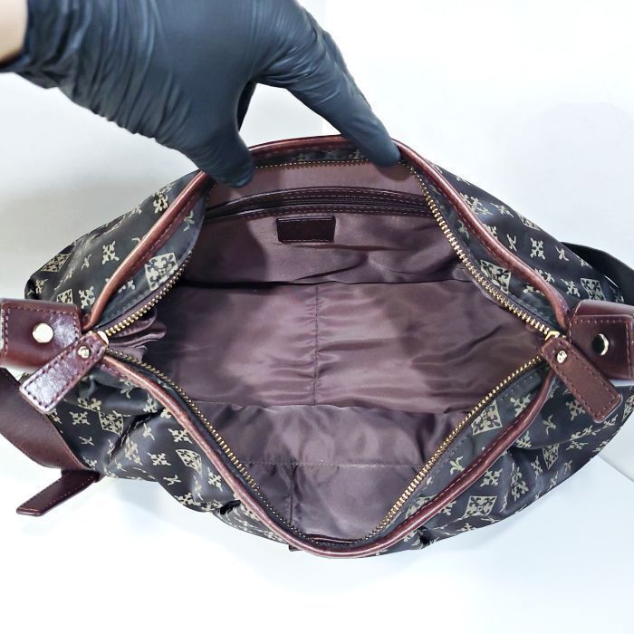 【アイテム】美品ナイロン レザー 総柄 肩掛け ショルダーバッグ ダークブラウン