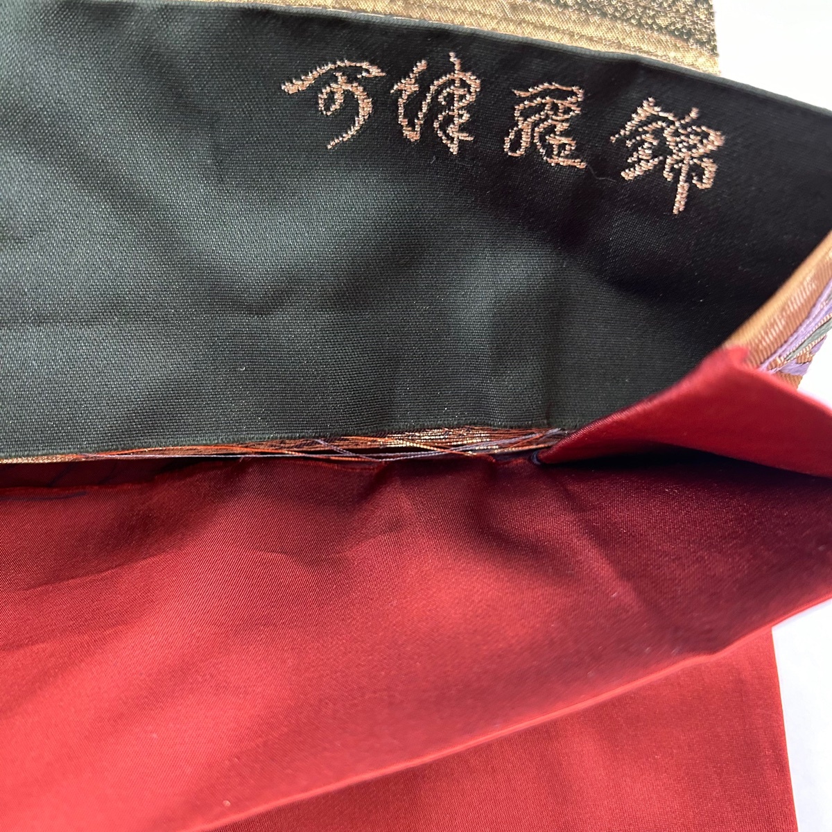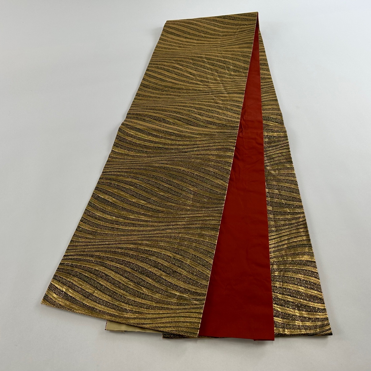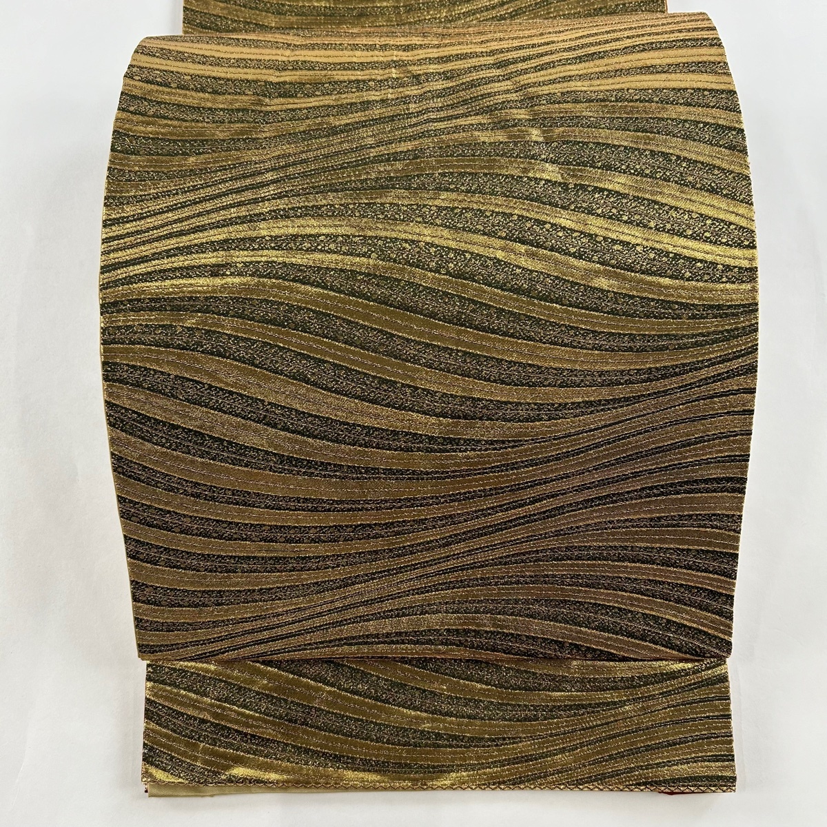 | 袋帯 秀品 比翼仕立て 縞 金糸 箔 金色 全通 正絹 【中古】 |