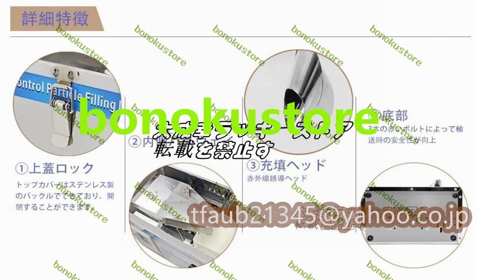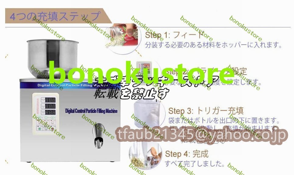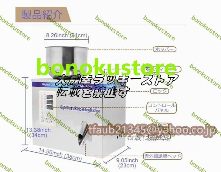 顆粒充填機 2~100g 粉末フィラー 強力振動型 穀物・調味料などを定量充填 赤外線センシングによる自動フィード デジタル制御