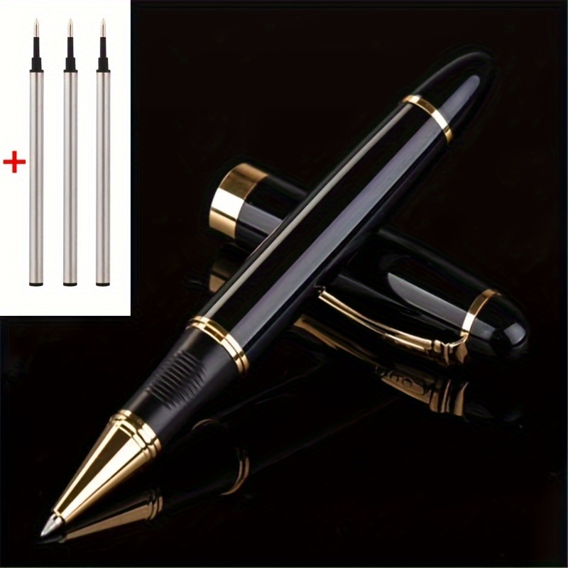 ボールペン 高級感 中字 黒ペン ブラック 黒リフィル3本付き 14cm 金属 光沢 キャップ式 おしゃれ シンプル ギフト ビジネス 仕事用 t5489
