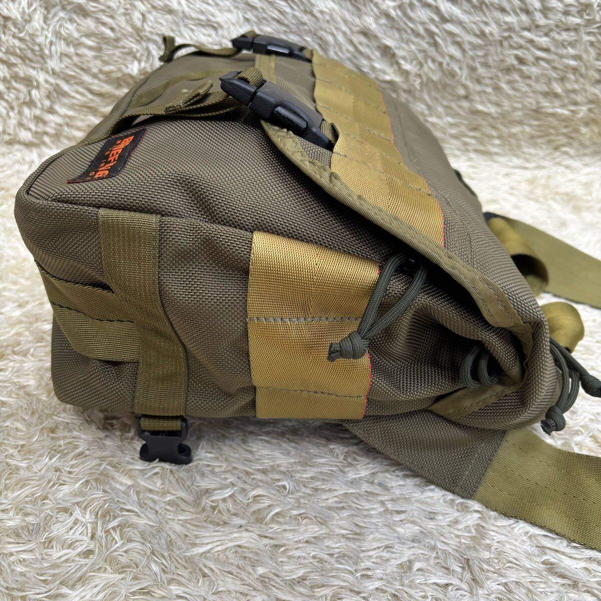 LANCE2をモディファイし、よりコンパクトによりシンプルに仕上げたLANCE3。サイドのフラップポケットも省くことで、よりコンパクトで使い勝手の良いサイズに仕上げた一品。背面のベルトを使用することでメッセンジャースタイルでの使用も可能、新たな定番モデルとして人気を博しそうです。