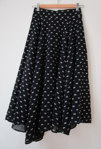 アシンメトリーの裾デザイン   フレアシルエット   6枚はぎスカート  シワ加工の薄手の生地になります。