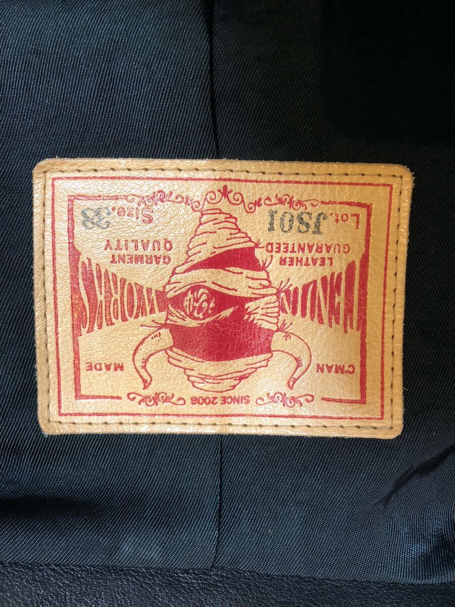 ステッチはホワイトに変更して有り、真っ黒な革ジャンよりソフトな感じになっています。