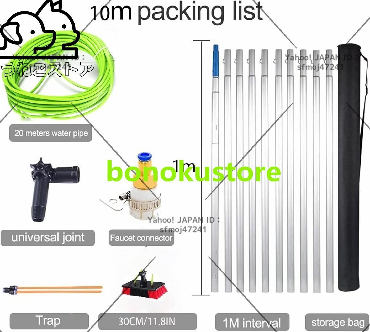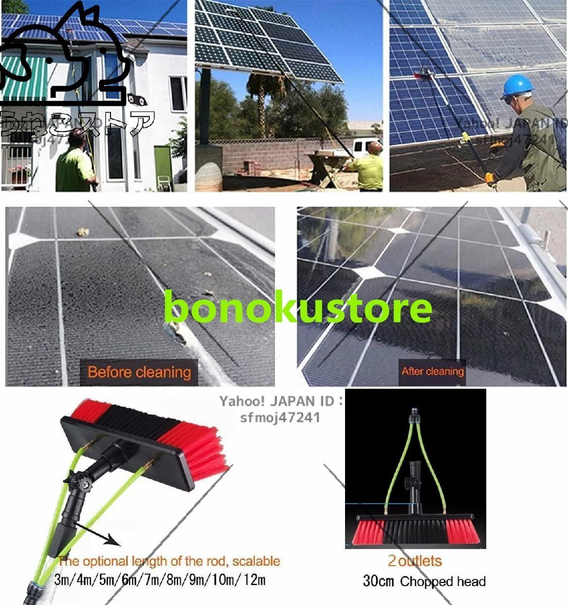 使用範囲:窓掃除、太陽光発電パネル掃除、バス・車外掃除、大型車、トラック、トラック、キャラバン、ボートなど