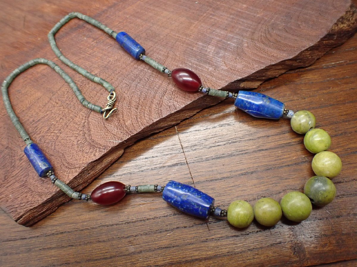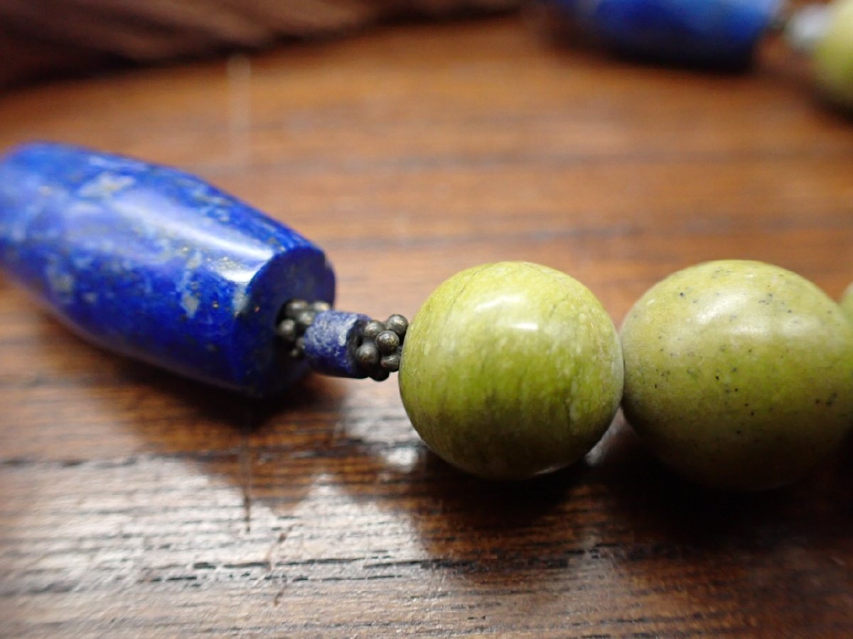 | 商品詳細 アンティーク ナチュラルストーン ラピスラズリー サーペンティン ネックレス | |