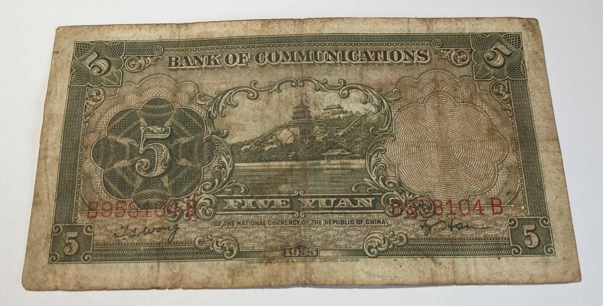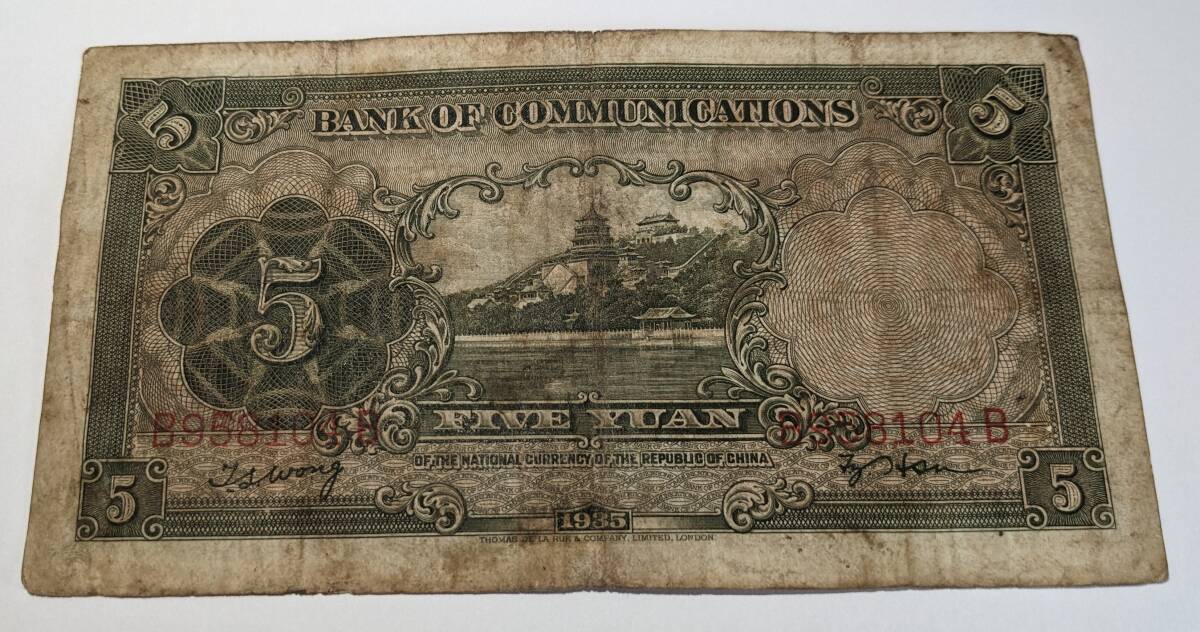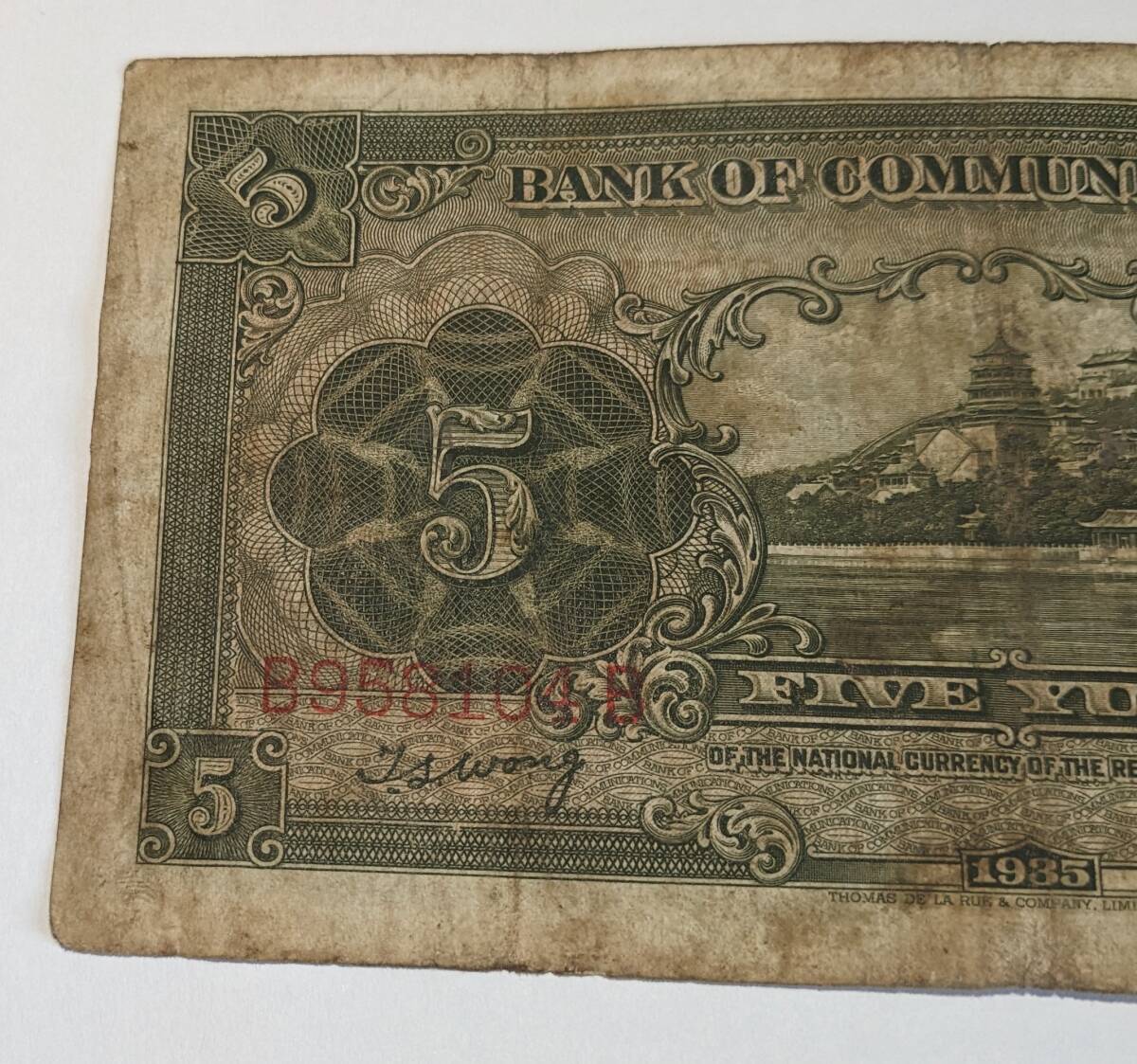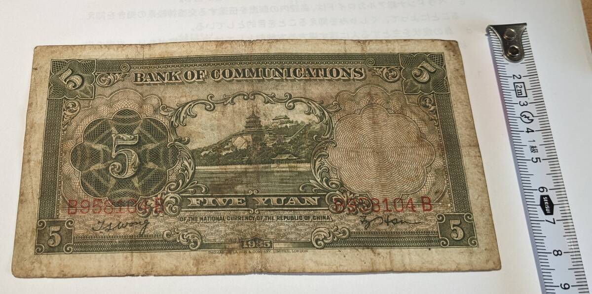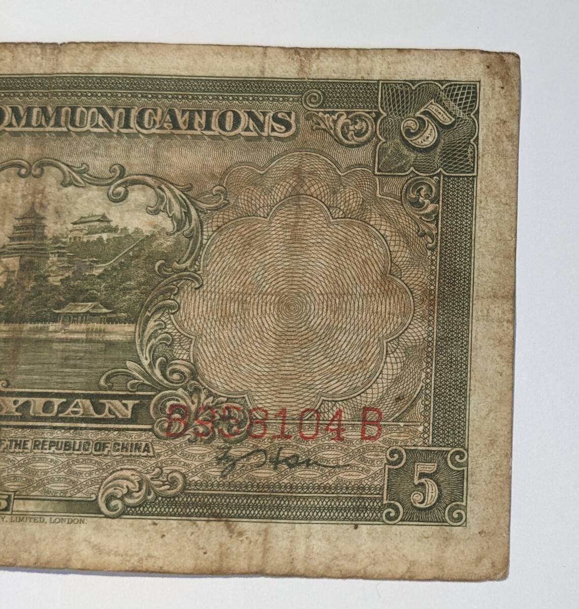 ’1935 中華民国二十四年 伍圓(5円)紙幣 交通銀行 流通品