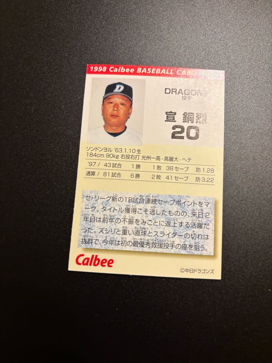 1998 宣銅烈 プロ野球チップス カルビー 検 BBM epoch 1st 野球カード 中日ドラゴンズ 2