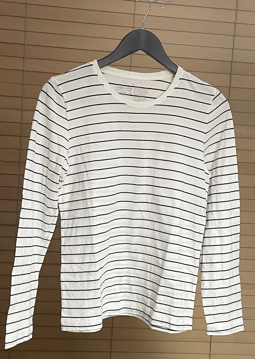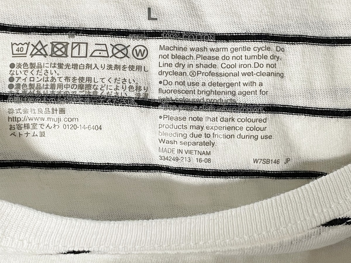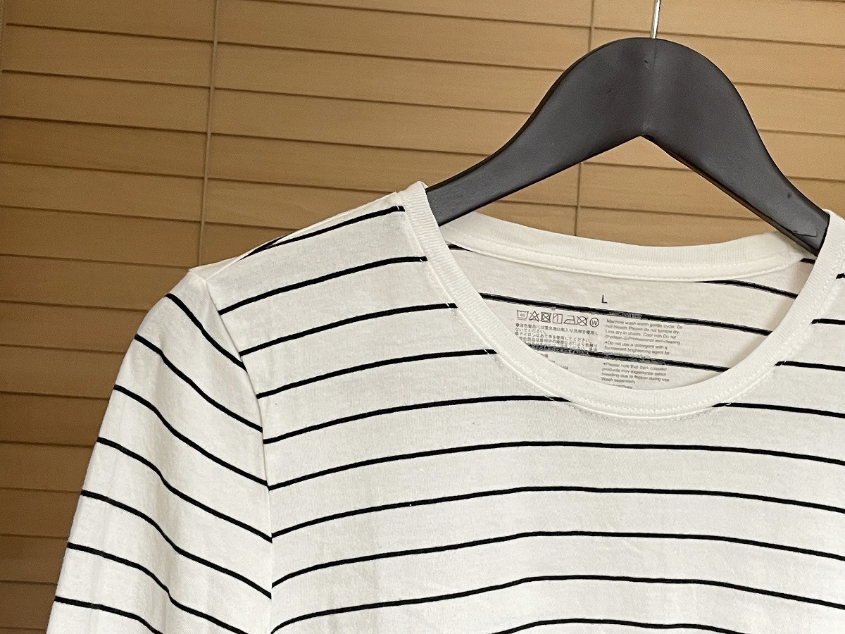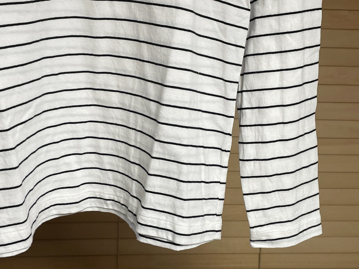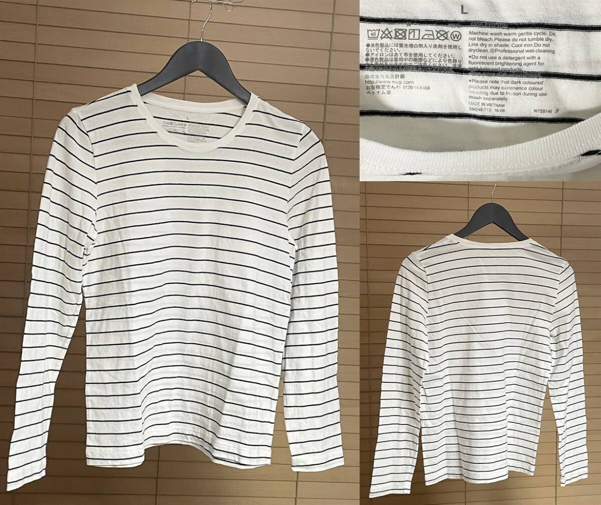【激安1点のみ 国内正規品】無印良品 MUJl オーガニックコットン ボーダー クルーネック 長袖 Tシャツ L ホワイト×ブラック W7SB146