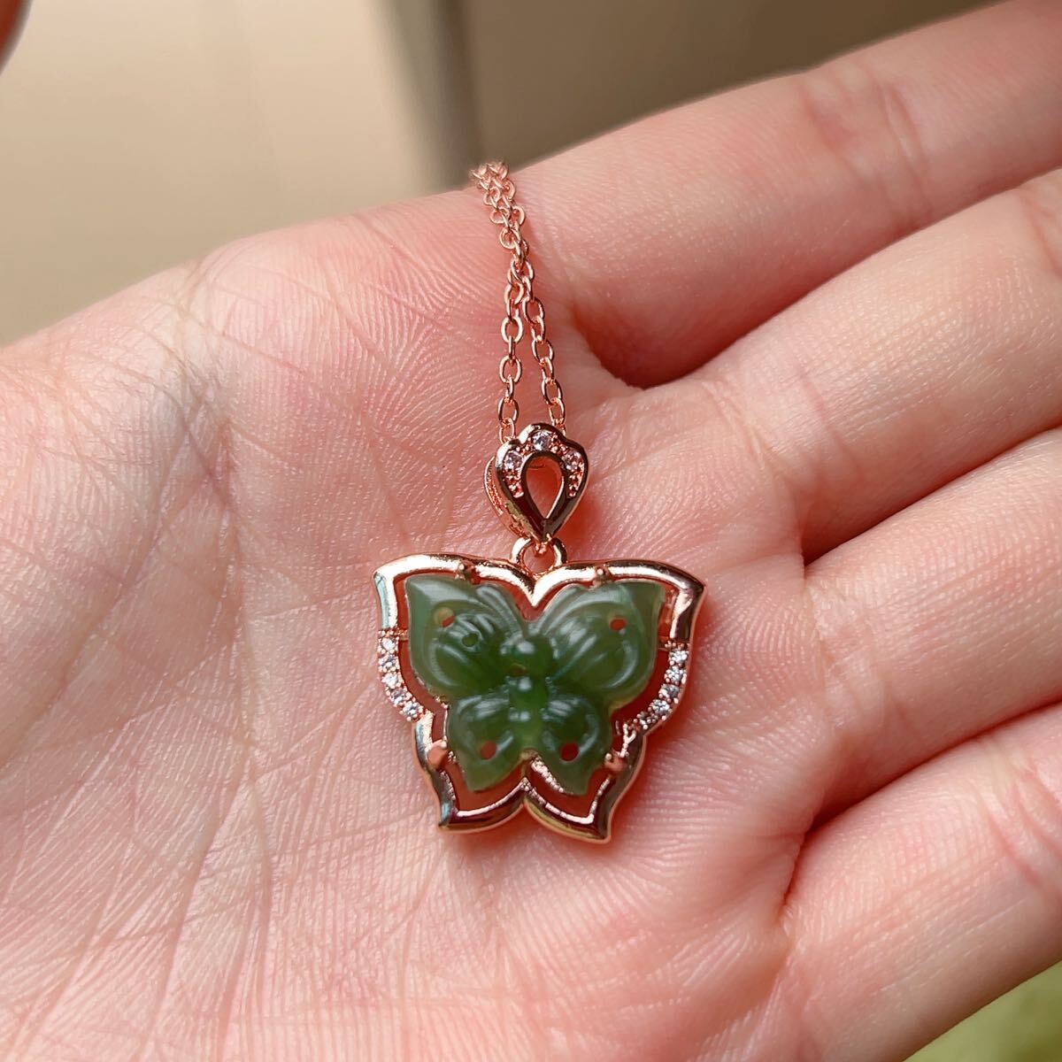 訳あり◇和田玉◇翡翠・ヒスイ◇ネックレスペンダント◇蝶彫刻◇天然石◇パワーストーン◇巾着袋付き◇プレゼントに 020P413