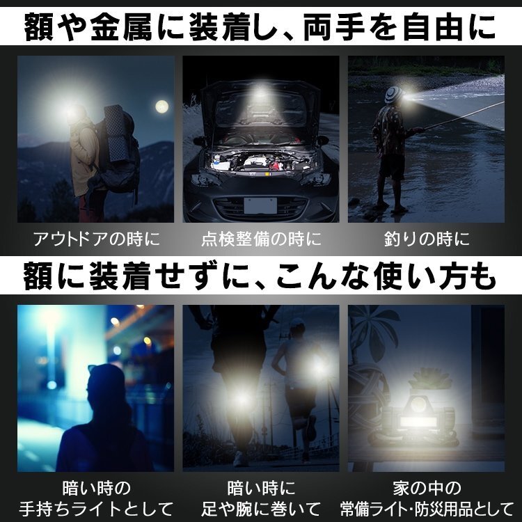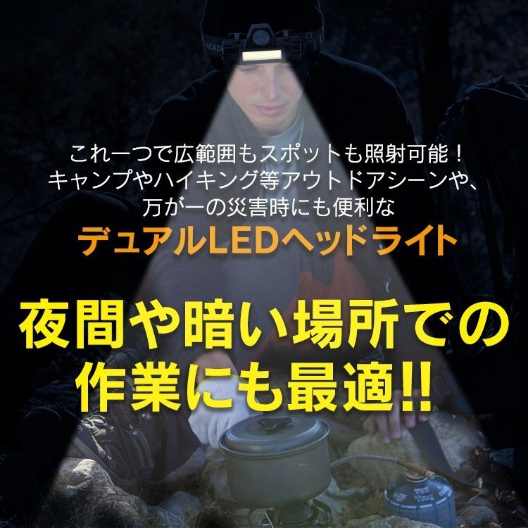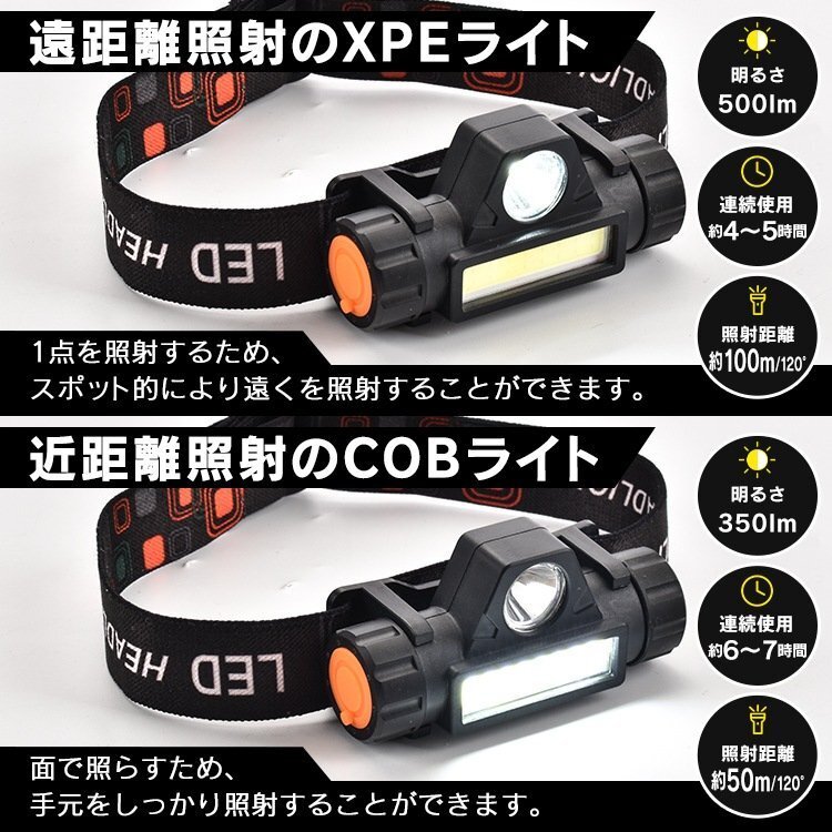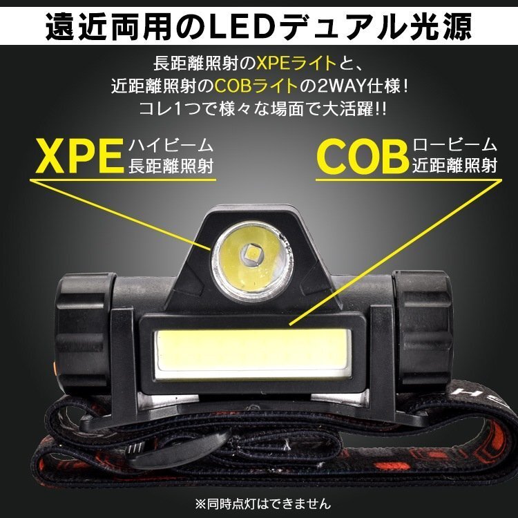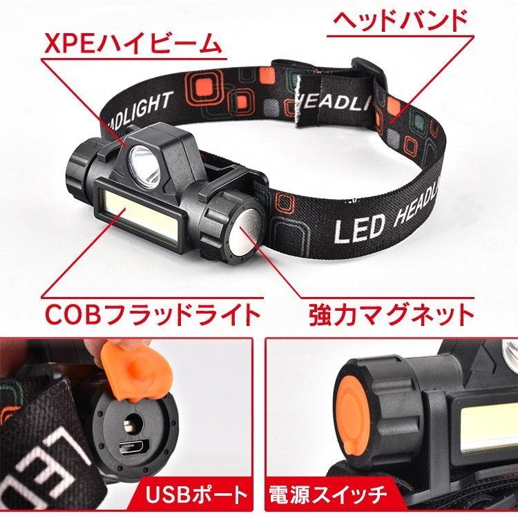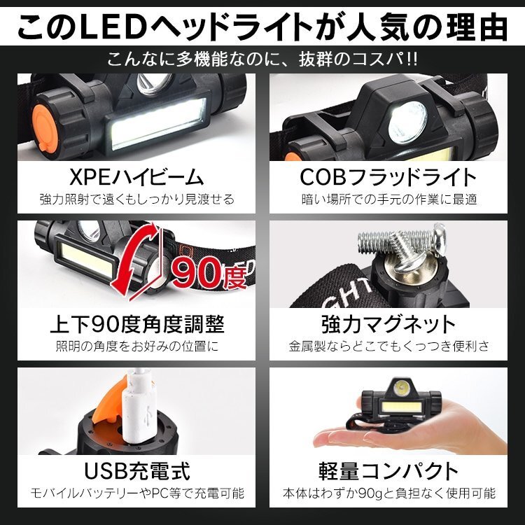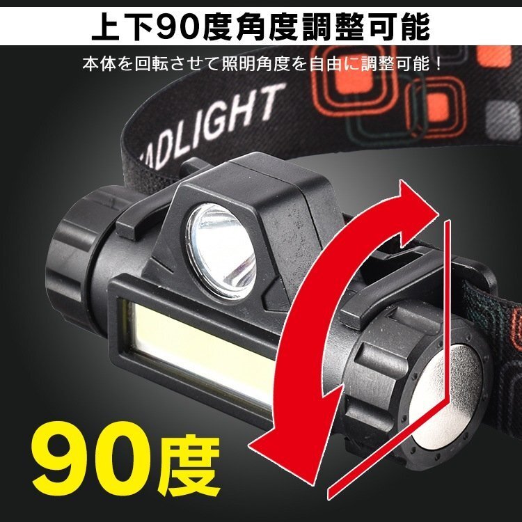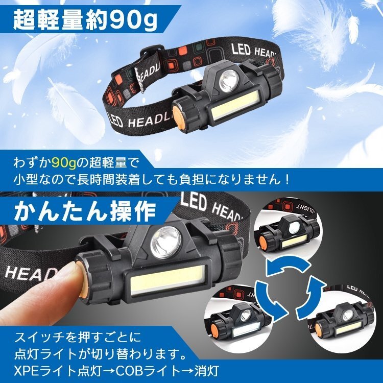 ヘッドライト XPEライト COBライト 2個セツト 遠近両用 高輝度LED 防水 90度回転 超軽量 小型 常備ライト アウトドア キャンプ ハイキング