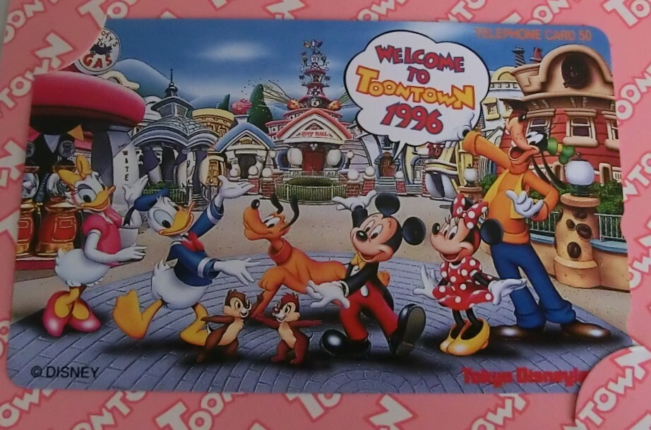 東京ディズニーランド WELCOME TO TOON TOWN 1996 テレホンカード 50度数 台紙付■未使用■当時物■USED■TDL■ヴィンテージ レトロ Disney