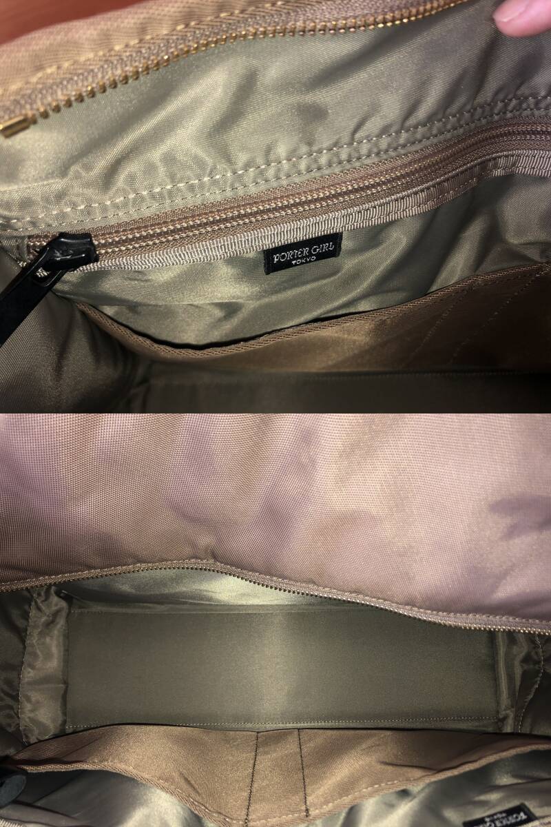 ご覧いただきありがとうございます。 ポーター ガール シア トートです。 ネームタグ付きです♪ 大きい方のLサイズです♪ 学生さんやOLさんに大人気のバッグです!!!! カラーは、オークです♪ しっかりふたが出来るトートです♪ 背中面の中身には、スポンジ層のpc収納層がございます♪ 両脇にも背中面にもポケットあります♪ スマホや定期など取り出しやすいです♪ 画像のように中身の収納も抜群です♪ <ポケット仕様> ①メイン層で1層 ②PC層で2層 ③背中面層で合計3層式です♪ 中身にもポケットございます♪ 見た目以上に収納力がございます♪ 定価:40,700円です。 サイズ当方計測(約):幅37㎝×高さ27㎝×まち13㎝。 <商品状態> 画像よりきれいなバッグです。 チャック等不具合ございません。 フラッシュ画像もUP致しました。 表面大変きれいです♪ ロゴきれいです♪ チャックきれいです♪ 中身きれいです♪ きれいな商品ですが、 1度は、人の手に渡ったものですので 細かいこと気にされる方は、ご遠慮ください。 郵送は、ゆうパックを予定しております。 Lサイズは、まず出品されませんのでぜひご検討ください♪