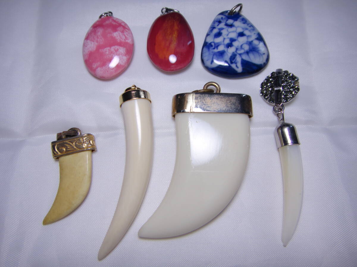 焼物 貝細工 骨 ツノ ネックレストップ ペンダントトップ チャーム 7点セット おまとめ! 牙型 ヴィンテージ C165