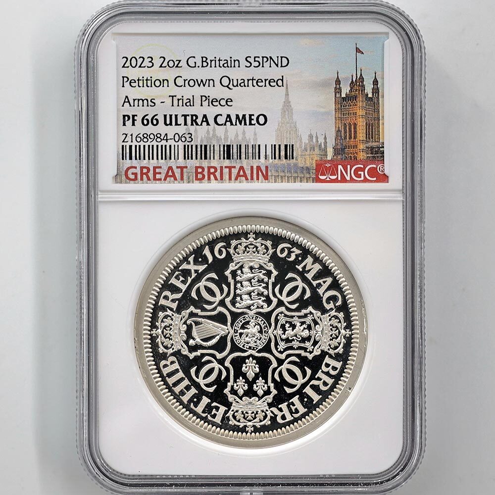 試鋳貨 2023 英国 ペティション クラウン 5ポンド 銀貨 2オンス プルーフ NGC PF 66 UC 最高鑑定 完全未使用品 元箱付 イギリス 銀貨