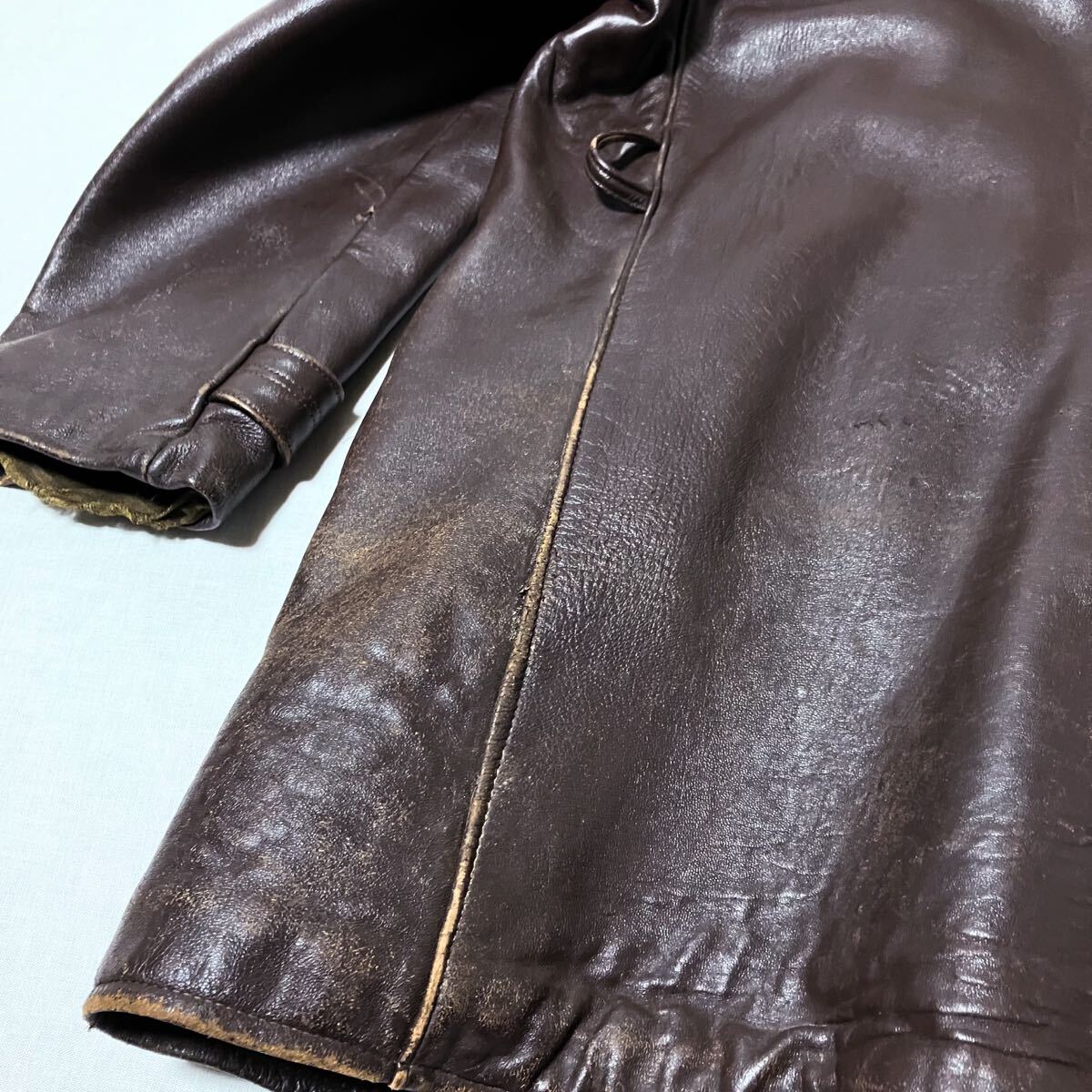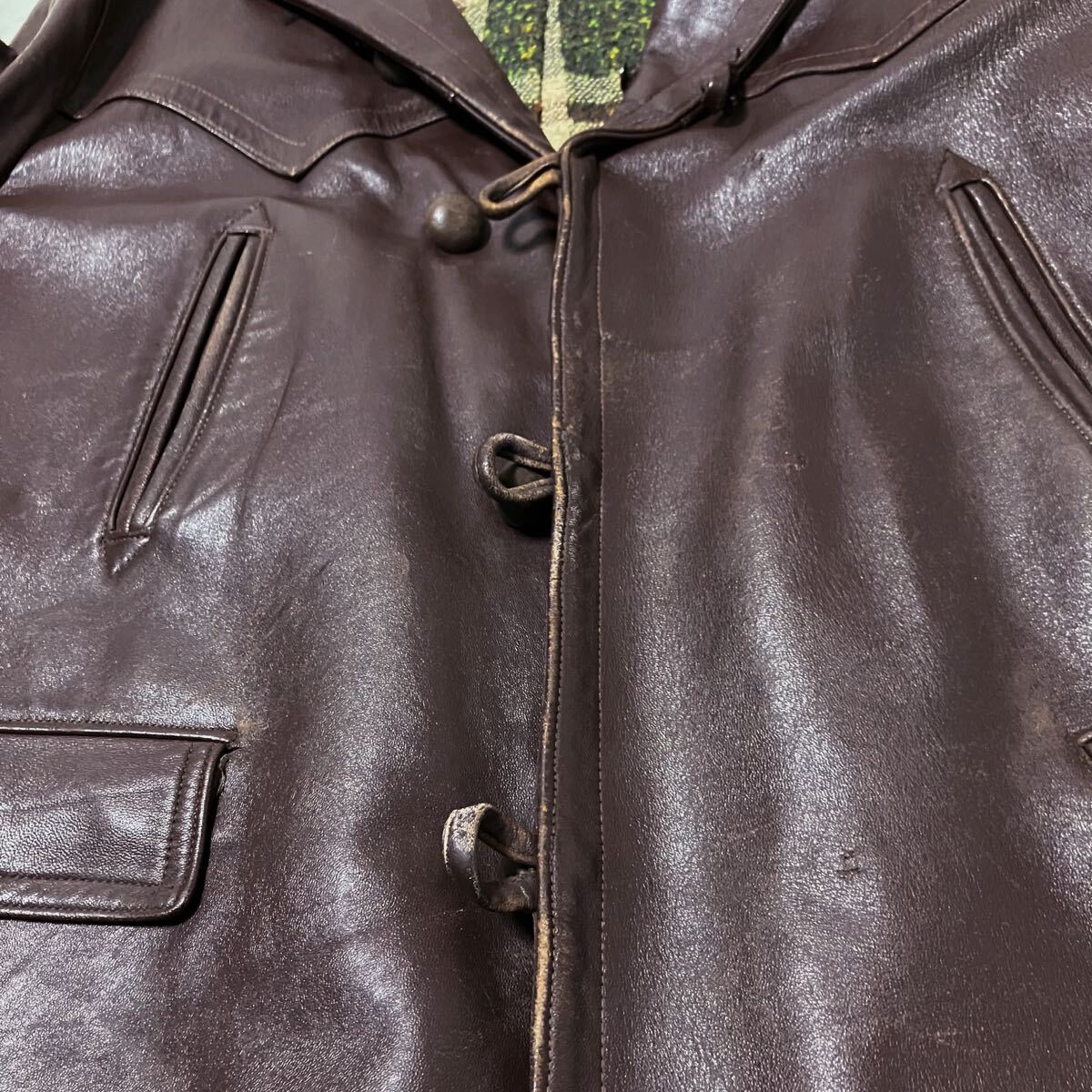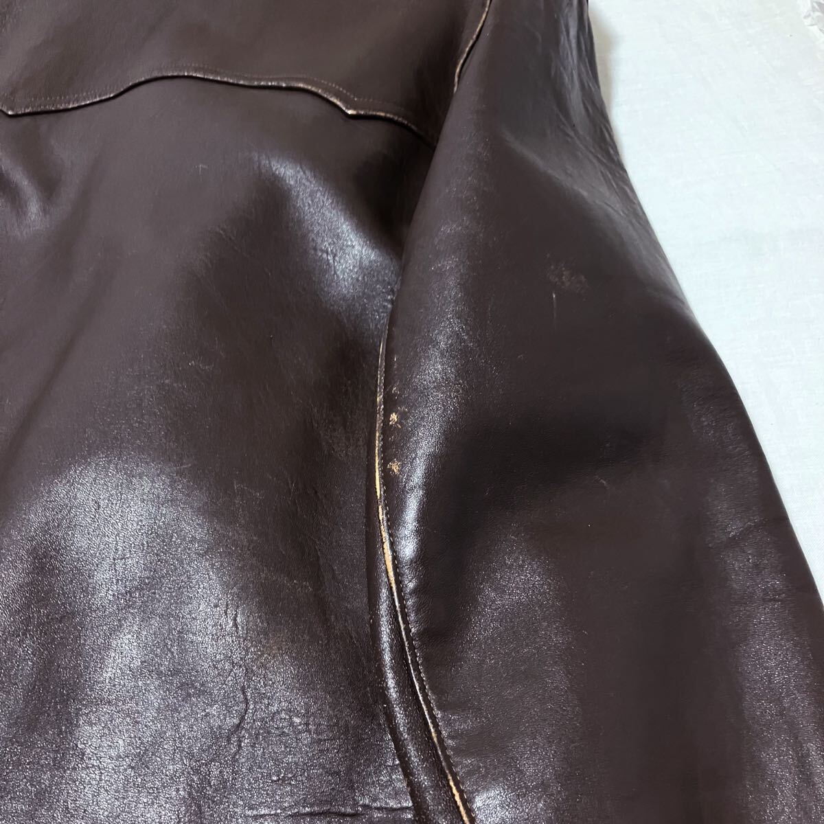 【Condition】全体的にレザー特有のスレキズがございます。片側のボタンがはずされています。袖先裏地にスレ、ほつれあり。左側袖先ベルト欠品。大きなダメージはなくまだまだご愛用いただけます。