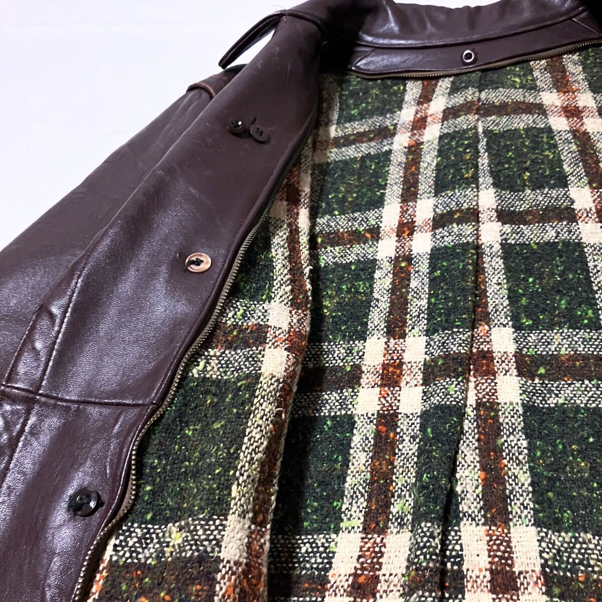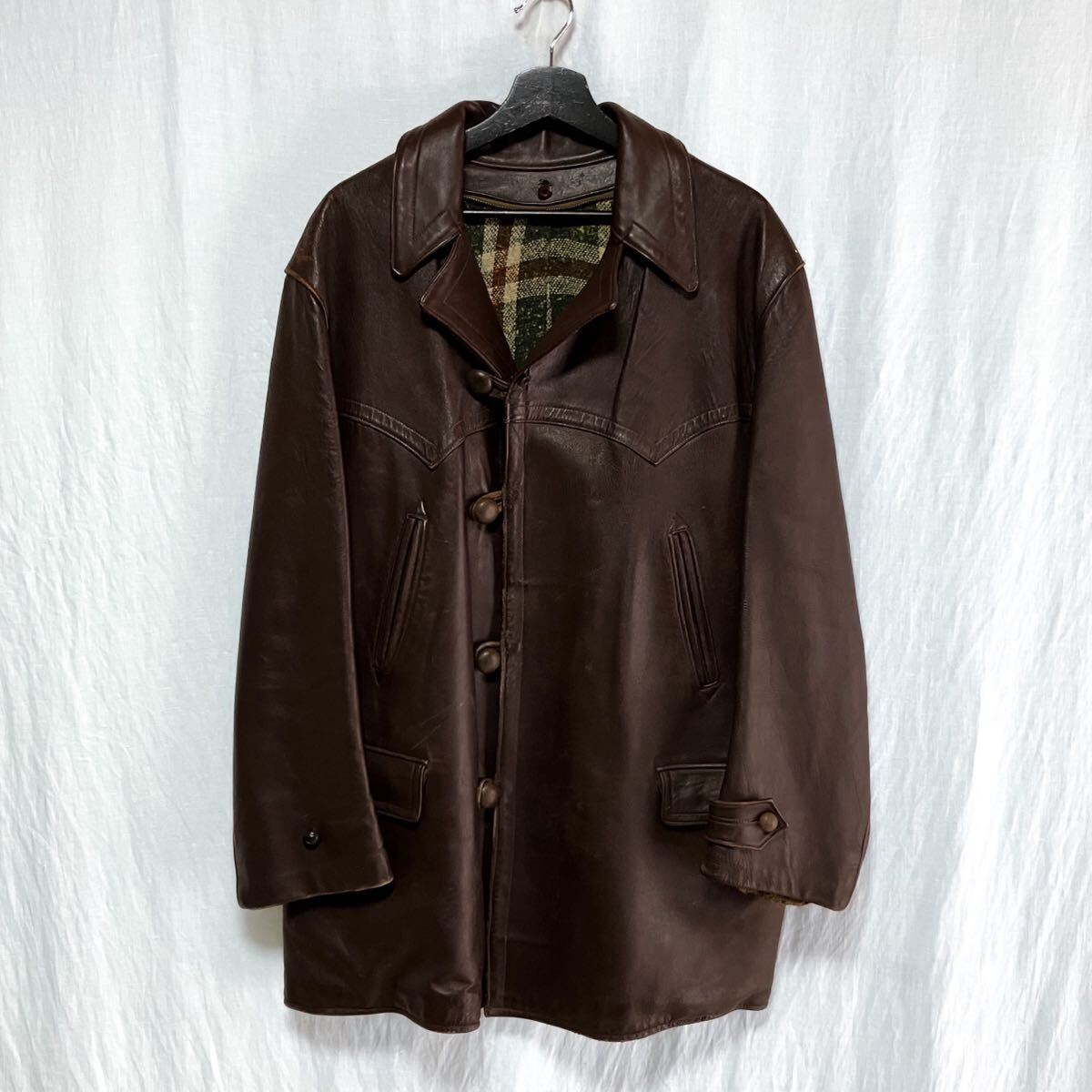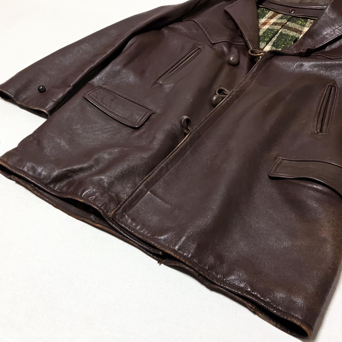【Condition】全体的にレザー特有のスレキズがございます。片側のボタンがはずされています。袖先裏地にスレ、ほつれあり。左側袖先ベルト欠品。大きなダメージはなくまだまだご愛用いただけます。