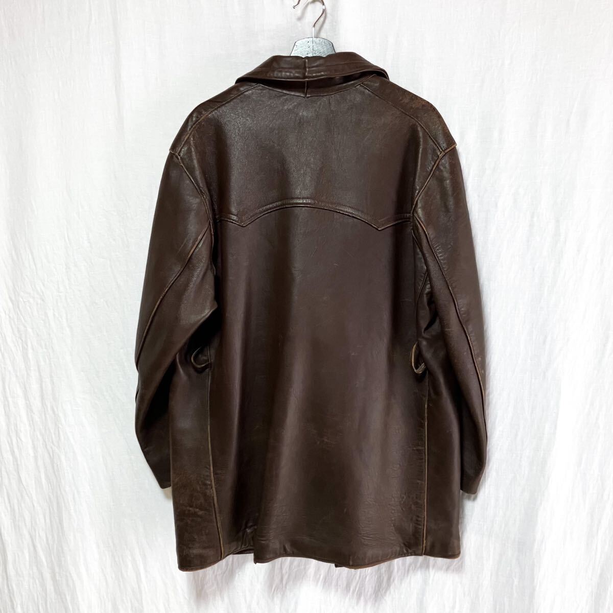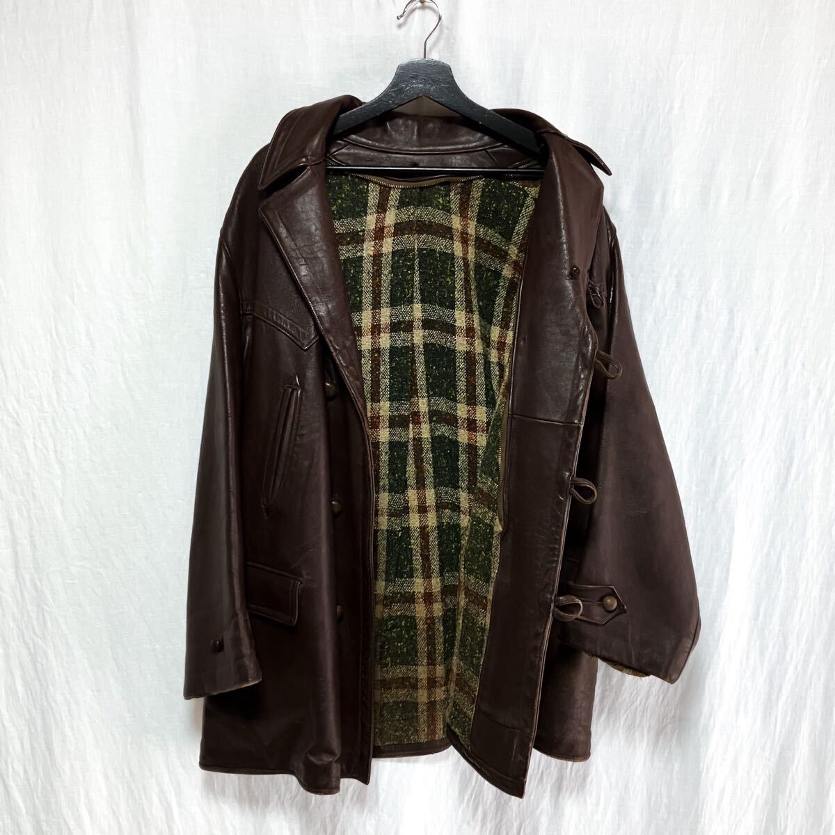 ユーロ ヴィンテージ ダブルブレスト レザーコート L〜XL ブラウン ジャケット カーコート ユーロ コルビジェ フランス軍 イギリス軍