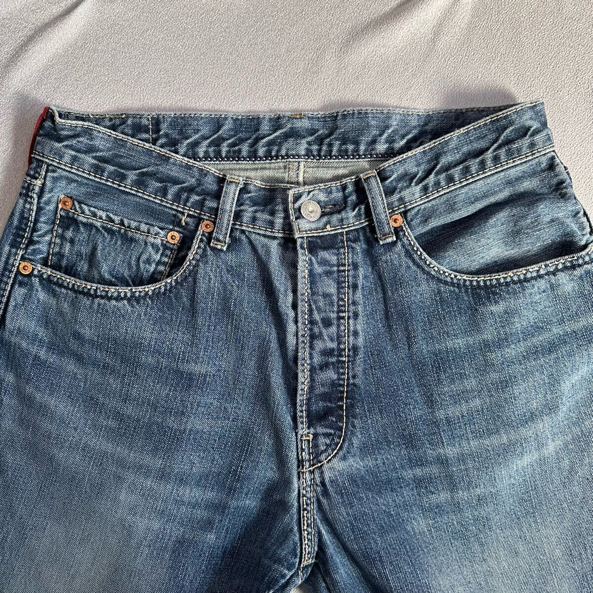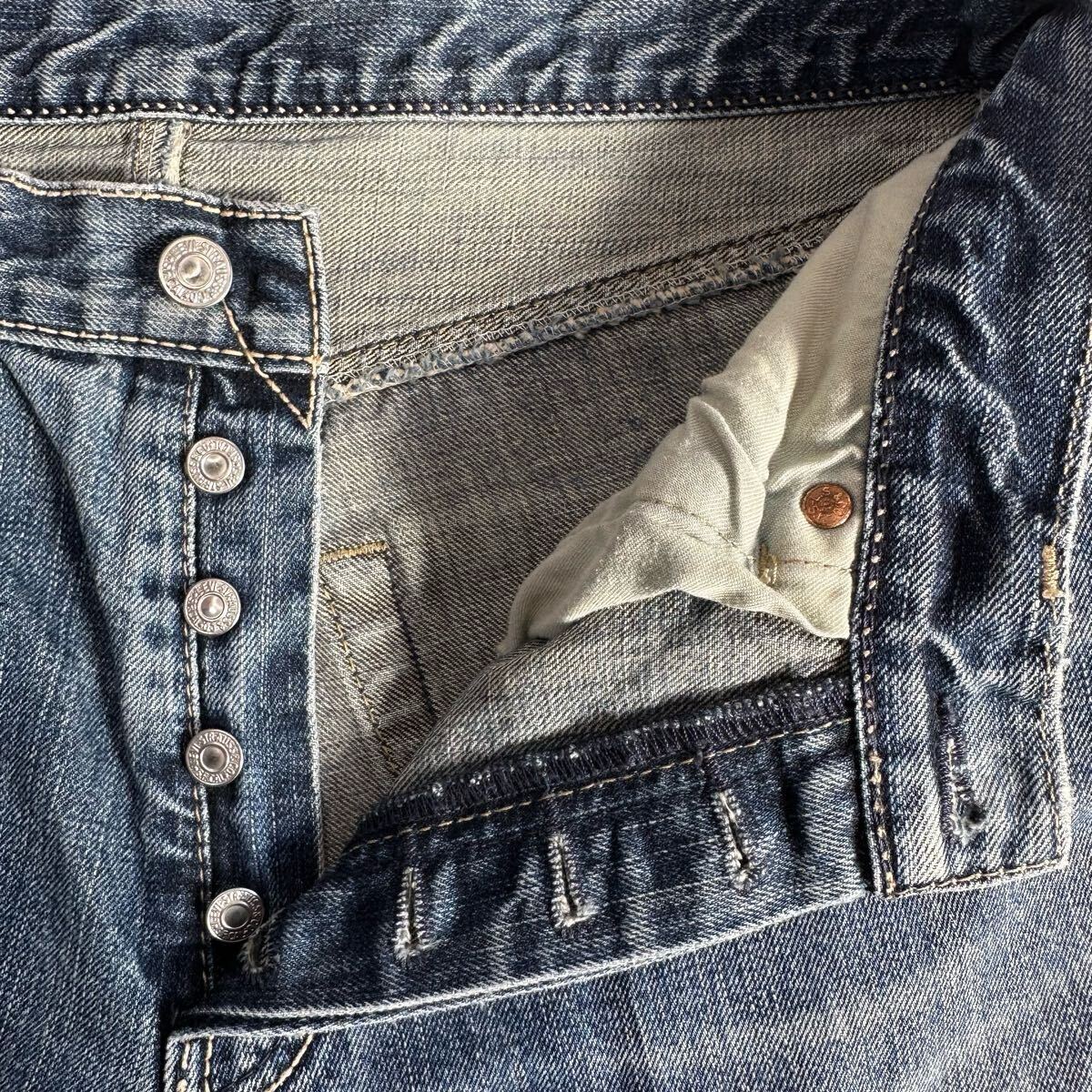 ボタンフライ仕様や赤タブ、バックのパッチにはしっかりと510・サイズ表記があり、オリジナルの風格が漂います。
