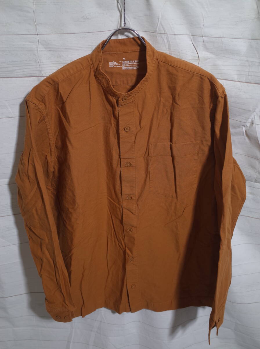 メンズ pm19 株式会社 良品計画 MUJI 無印良品 紳士 スタンドカラー 長袖 シャツ XL ブラウン系 茶系
