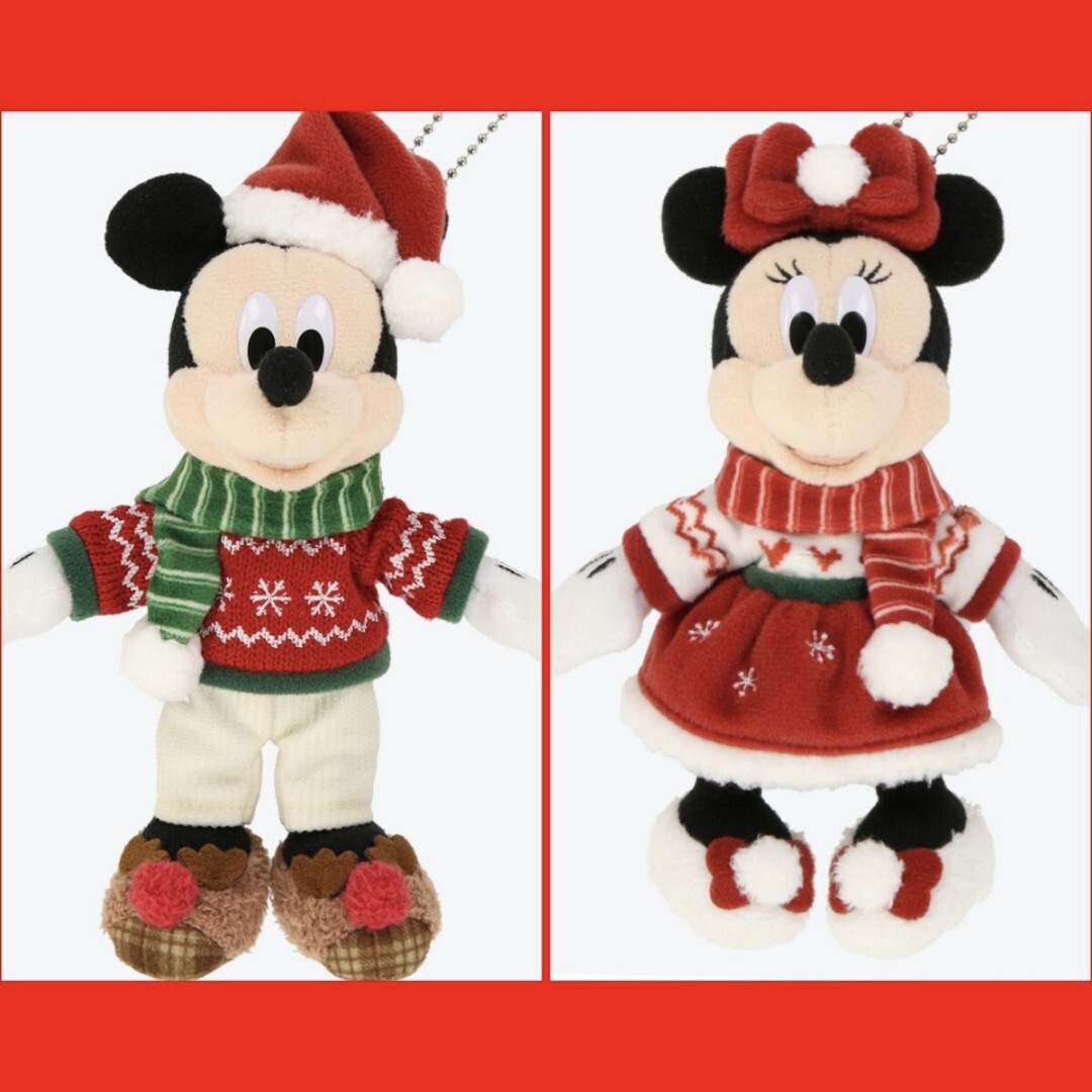 DISNEY XMAS 2024 ミッキーマウス&ミニーマウス ぬいぐるみバッチ タグ付き未使用品