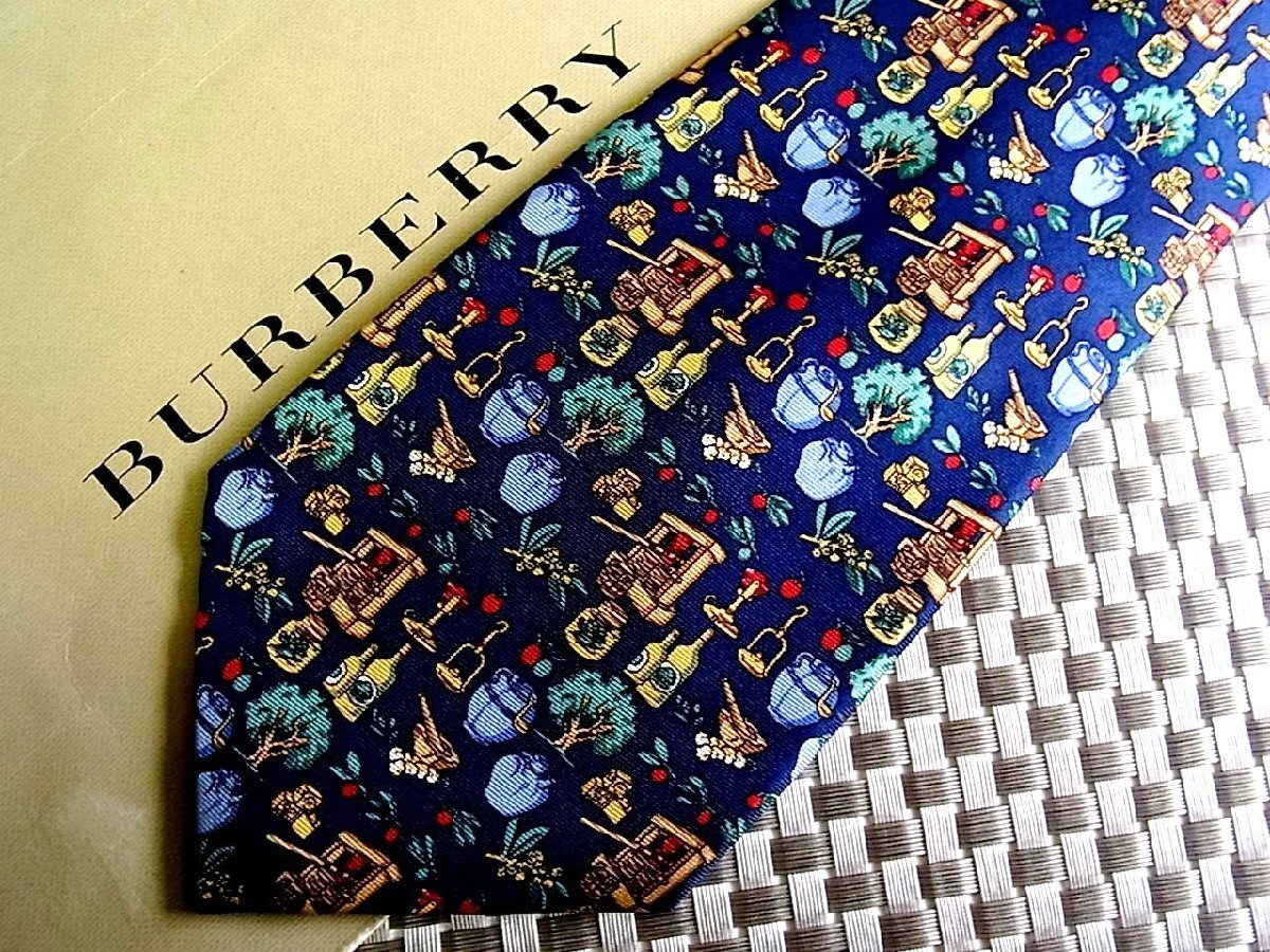 ★3712S★新品【リンゴ 果物 樹木 ツボ ボトル 柄】バーバリー【BURBERRY】ネクタイ