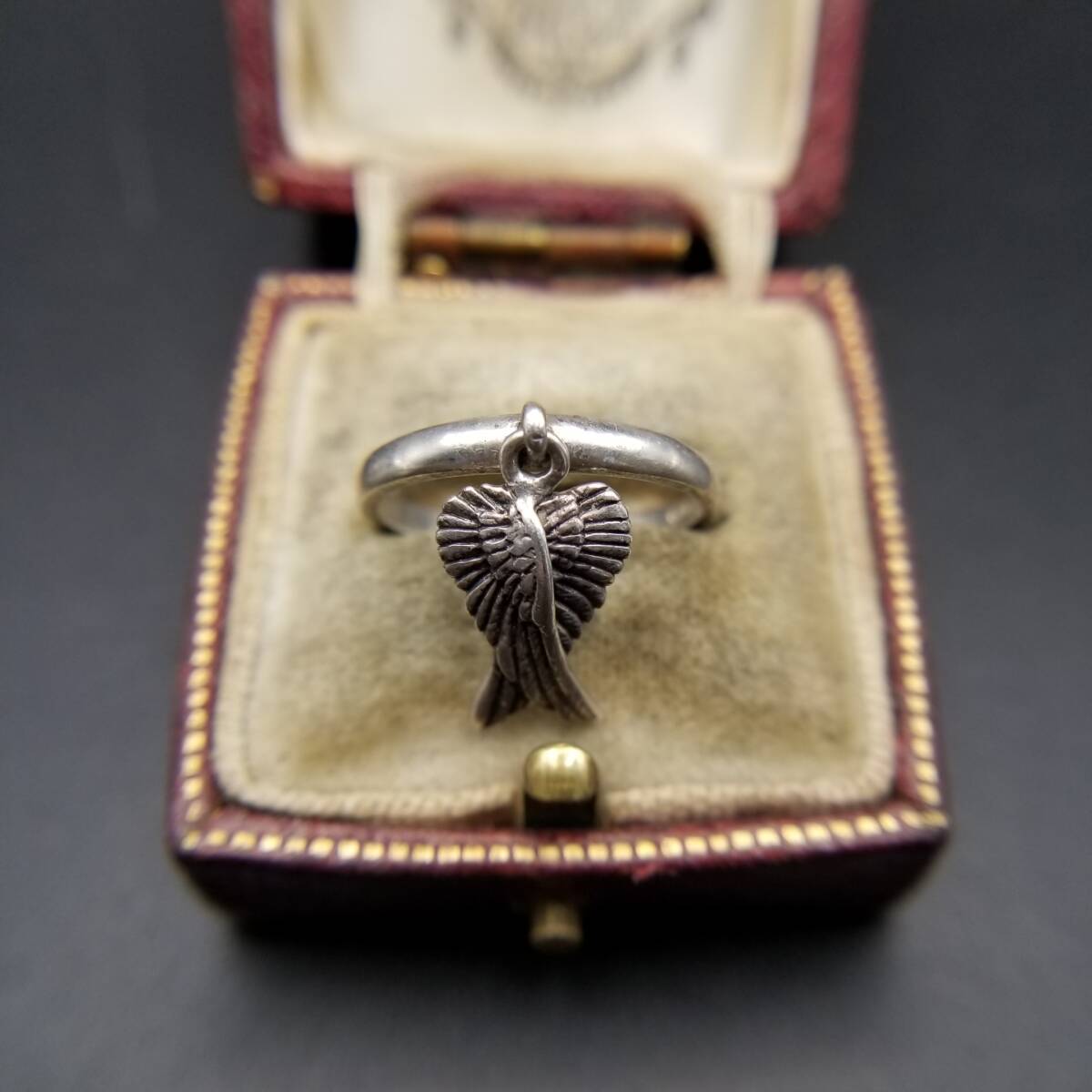 フェザー 羽根 チャーム 925 シルバー ヴィンテージ バンド リング 銀 指輪 細幅 モチーフジュエリー R15-B