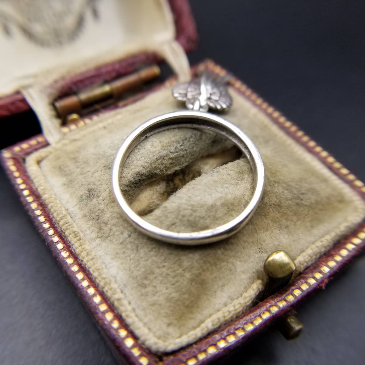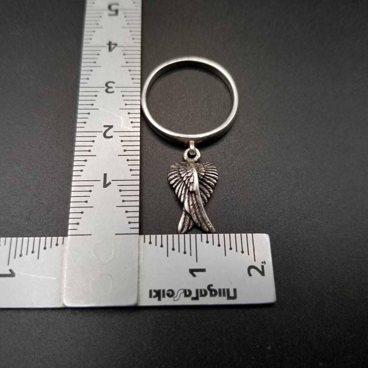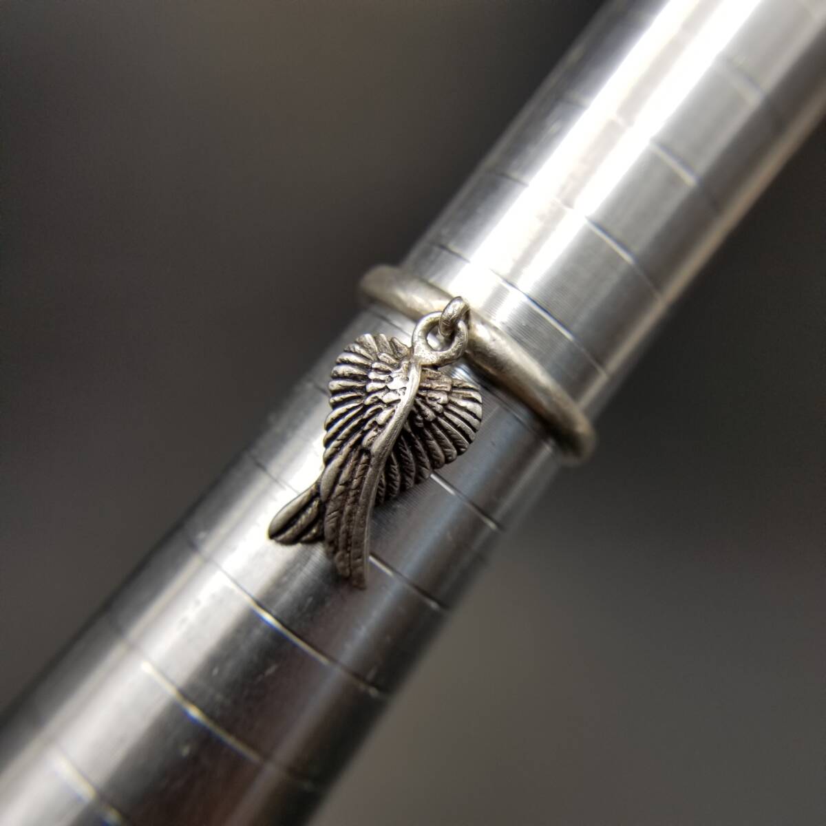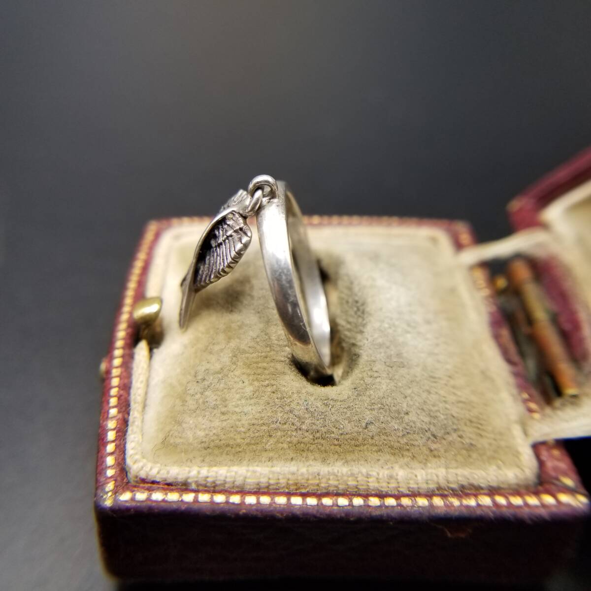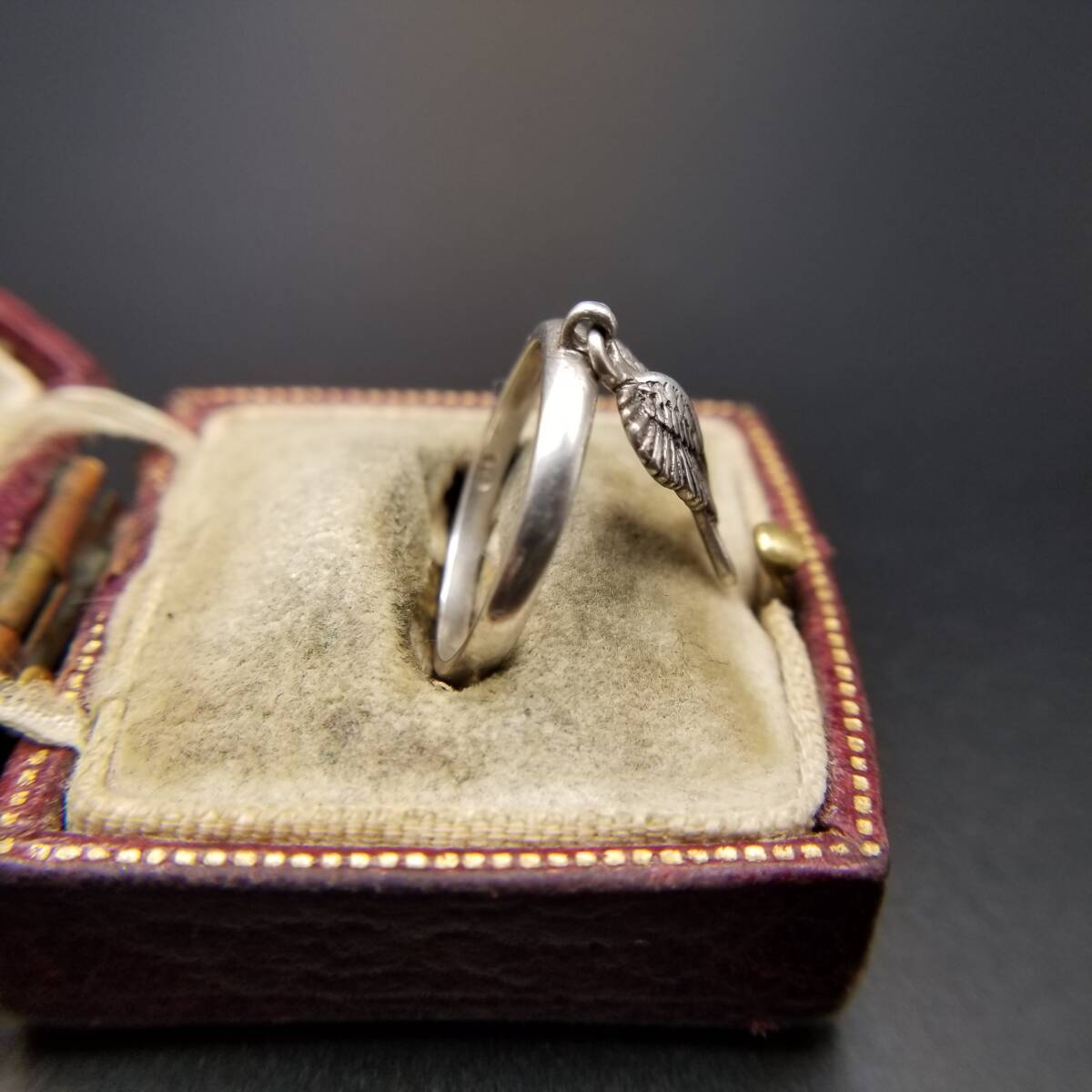 フェザー 羽根 チャーム 925 シルバー ヴィンテージ バンド リング 銀 指輪 細幅 R15-B