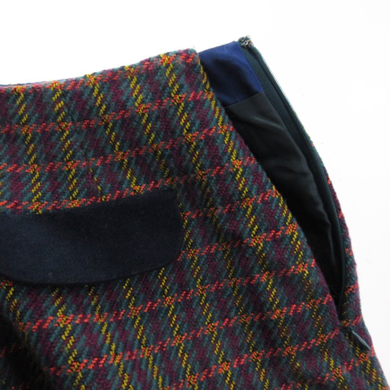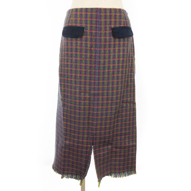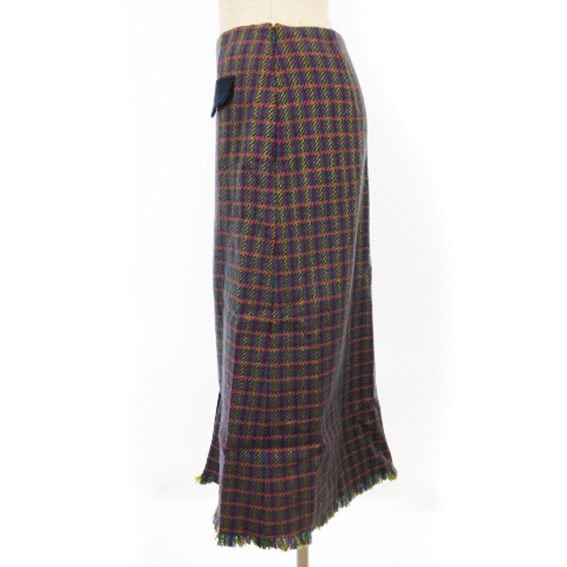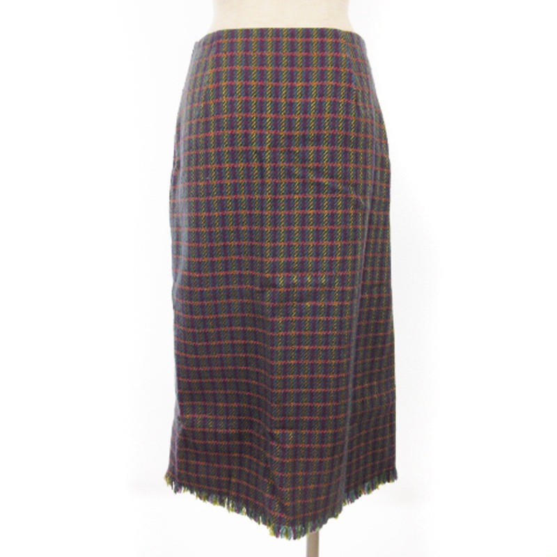 ルルロジェッタ ルールロジェット leur logette ツイード チェック スカート フレア ミモレ ロング ウール混 フリンジ 1 S 緑 グリーン 黄 イエロー /AT ■OS