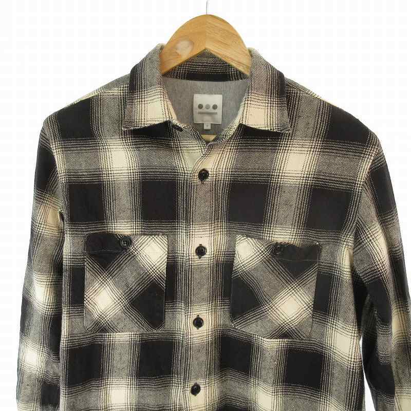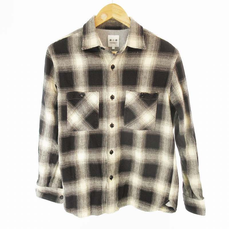 スリードッツ three dots オンブレ バッファロー チェック シャツ SO2004M ホワイト ブラック コットン S メンズ