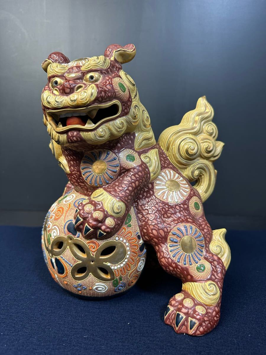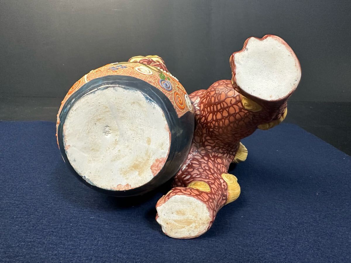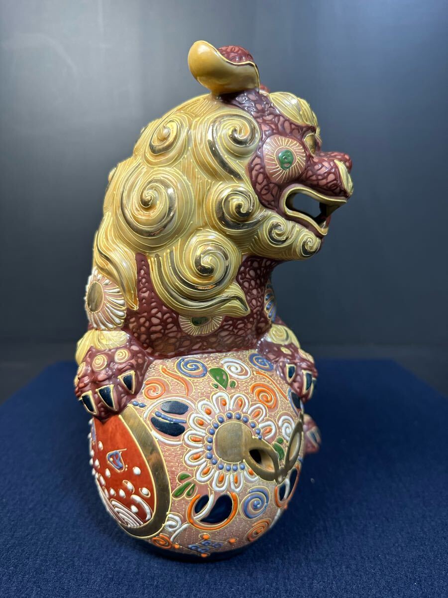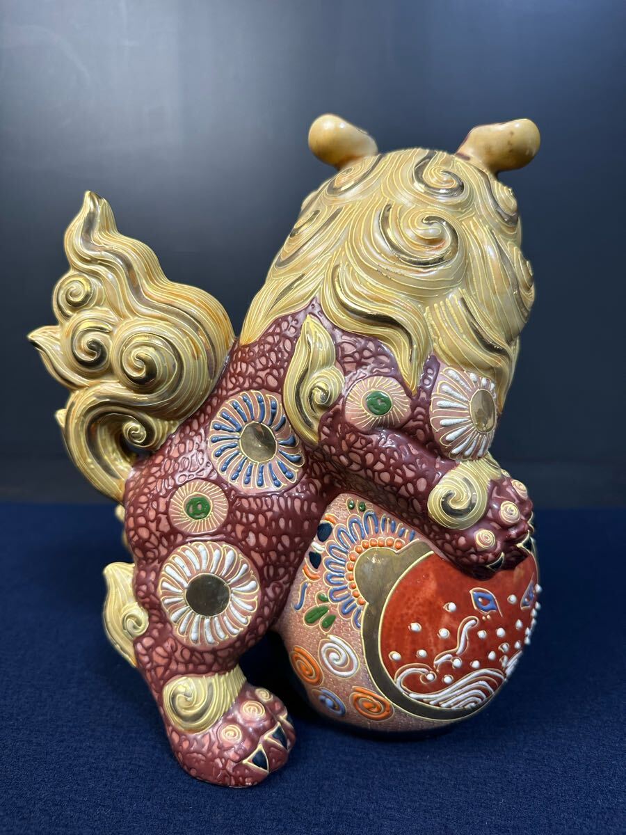 [B587] 九谷焼 玉乗り獅子 置物 縁起物 魔除け 狛犬 玉獅子 陶器 唐獅子