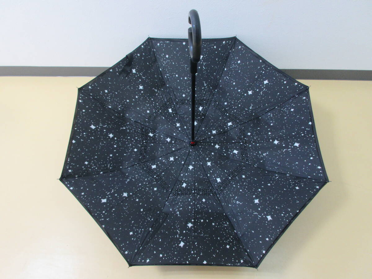 (せ-A1-1176)逆さ傘 長傘 ジャンプ式 逆さ傘 夜空 星空 キラキラ ブラック 黒 かわいい おしゃれ 全長約80cm 半径約55cm 中古 | |