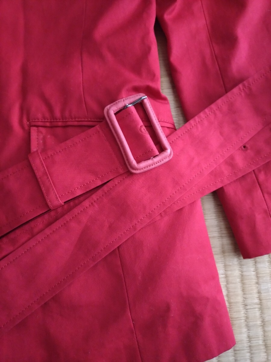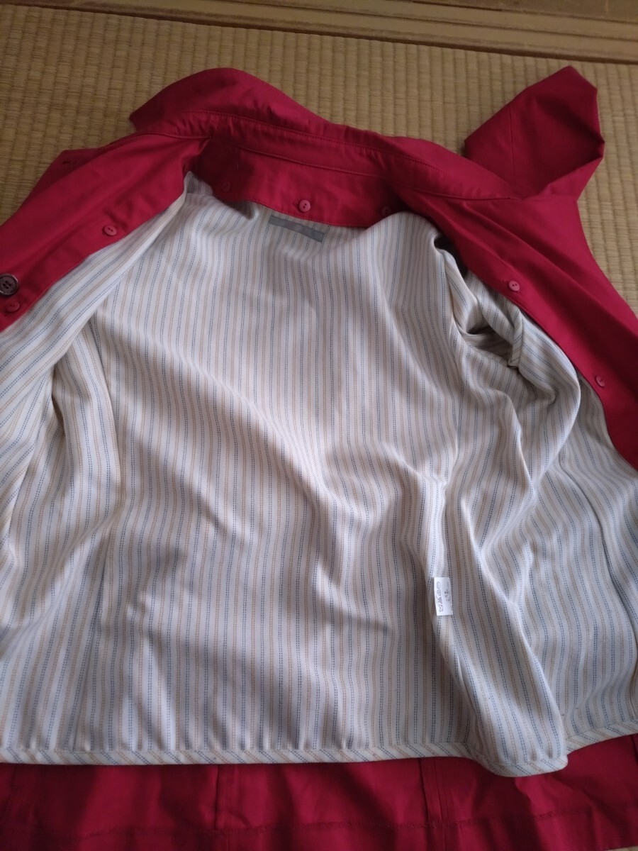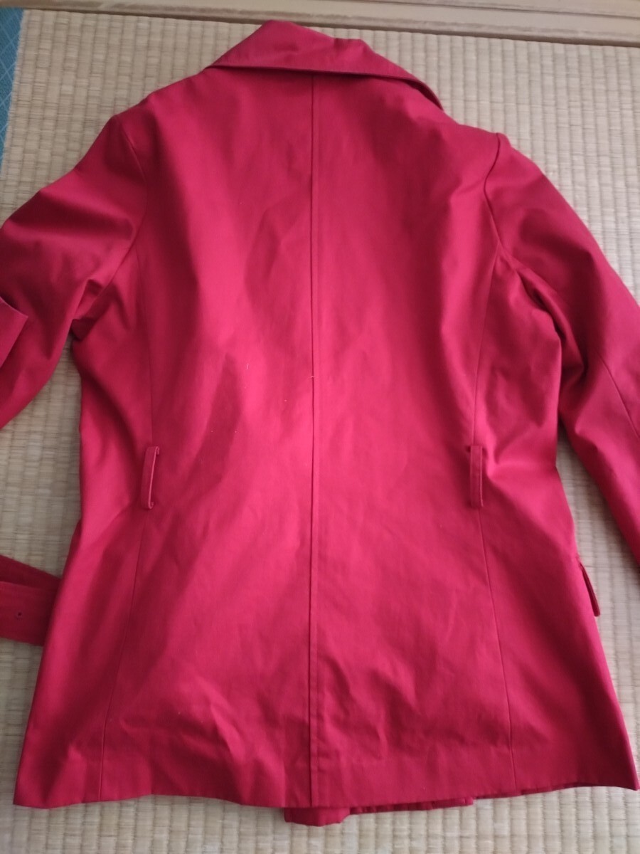 ダブルボタンのレッドトレンチコート、ポケット付きでスタイリッシュ。千趣会で購入したものです。似合わなくて数回の着用&外出となりますので、使用感あまりないと思います。