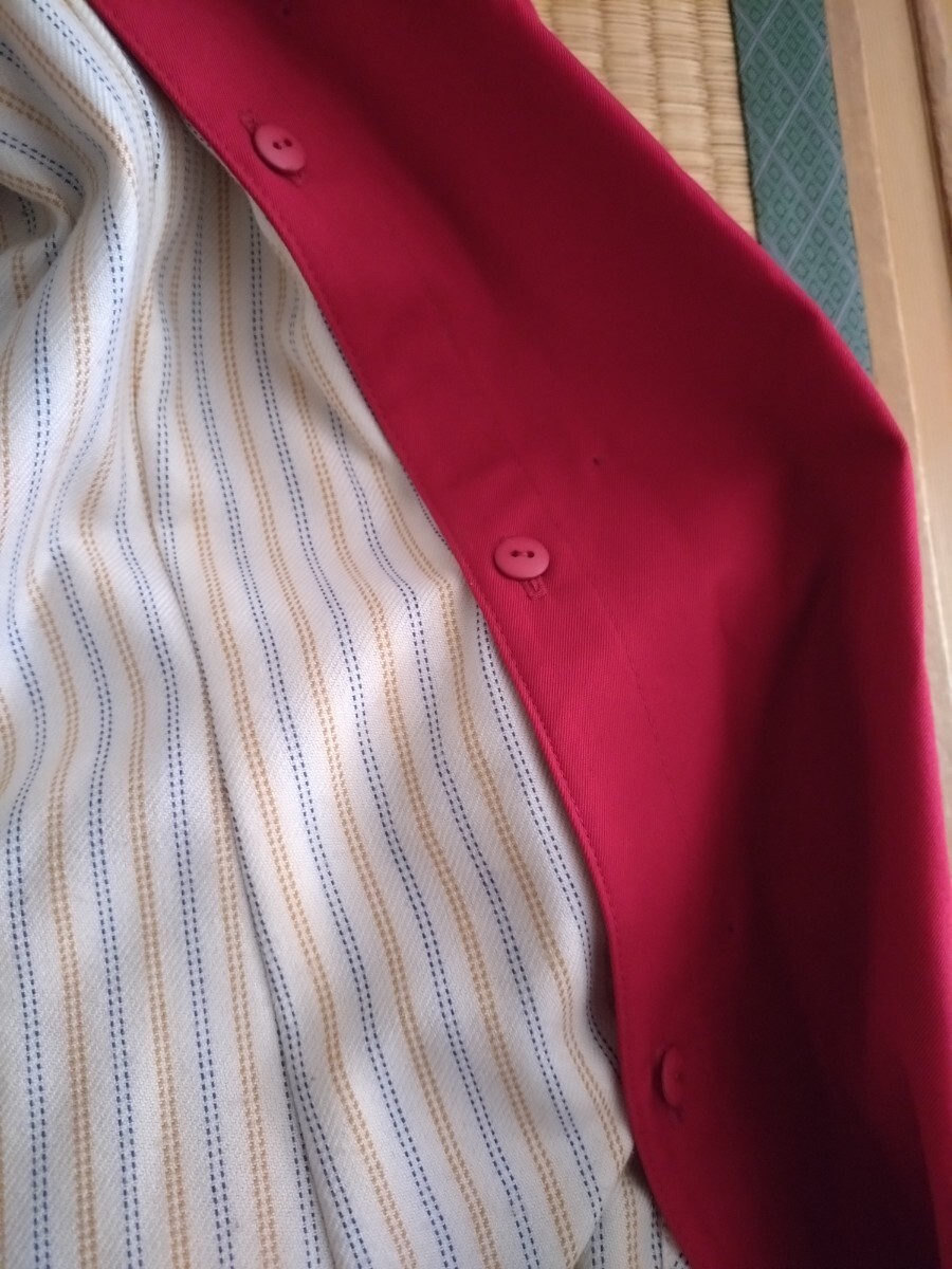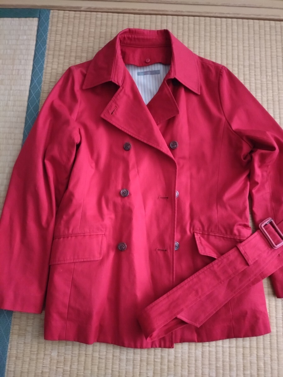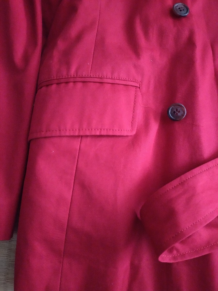 ダブルボタンのレッドトレンチコート、ポケット付きでスタイリッシュ。千趣会で購入したものです。似合わなくて数回の着用&外出となりますので、使用感あまりないと思います。