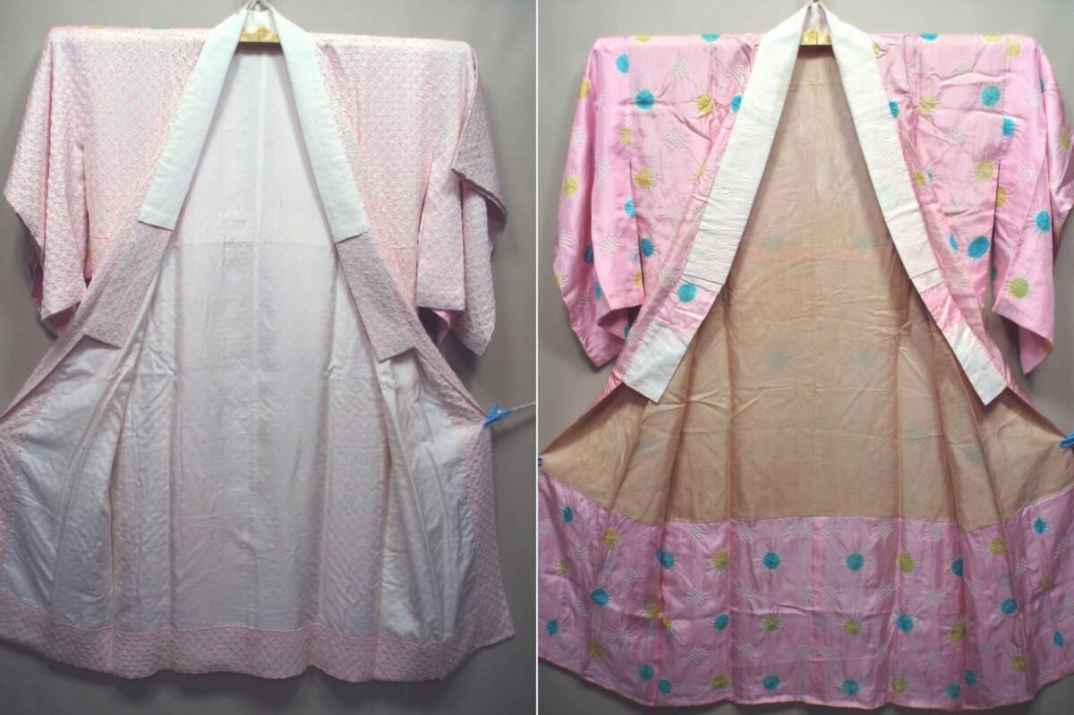 "L54244【生地取り用 リメイク用 正絹 絞り】 古い 長襦袢 2枚セット" |