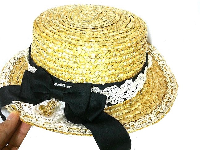 ALICE and the PIRATES 薔薇レースチャーム付きリボン カンカン帽 麦わら帽子